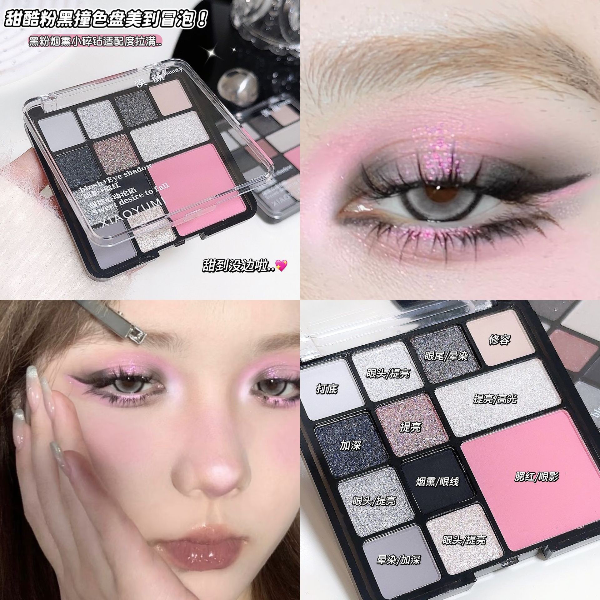 XIAOYUMI 8色の甘いハートのチークのアイシャドーのハイライトの一体盤の大きい地色の真珠の光の艶消しの平価の化粧のアイシャドー