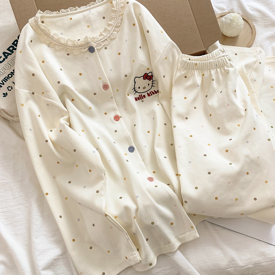 パジャマの女性春と秋のアニメは甘くてかわいい長袖の日系ins風の少女の家の服の2つのセットは外で着ることができます。