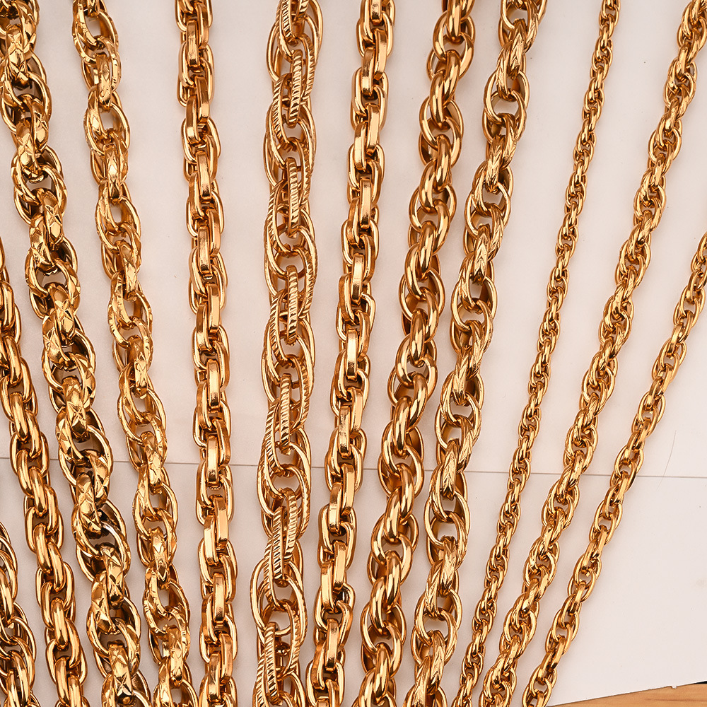 不锈钢扁芯麻花双十字真空电镀双扣链条DIY手工金属链子配饰包挂