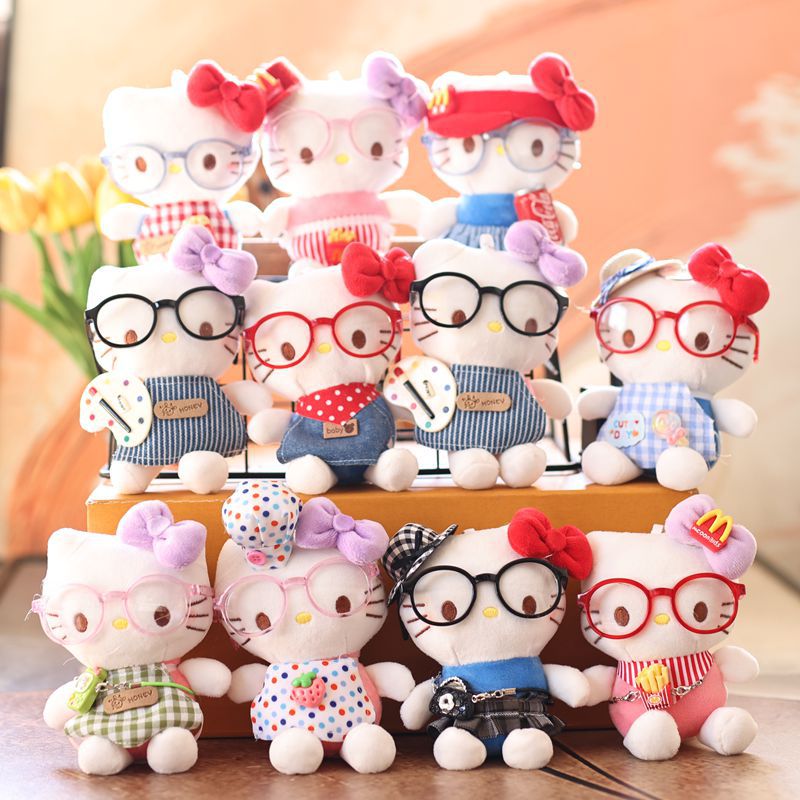 网红可爱萌眼镜kt挂件毛绒玩具公仔小猫咪包包挂饰钥匙扣娃娃玩偶