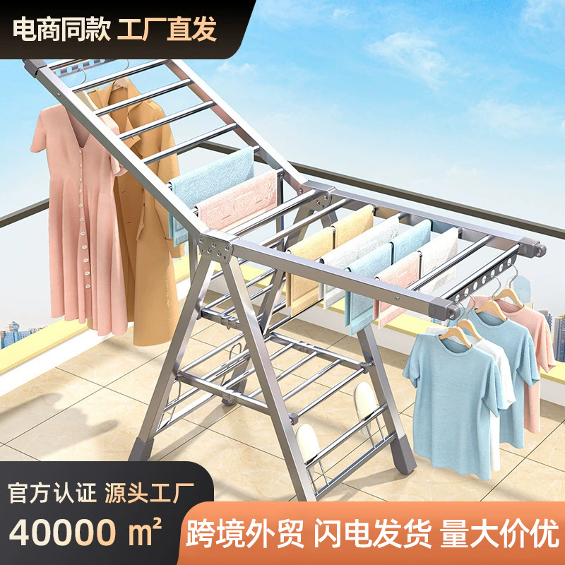 源头工厂不锈钢晾衣架家用落地折叠阳台晒衣架婴儿衣物被子晾干架
