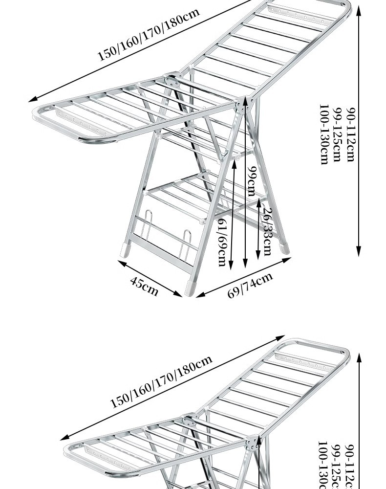 ステンレスの床置きハンガーは折り畳みして設置しないでください。ベランダの家庭用ハンガーの翼の形は布団の服の神器の棚を干します。