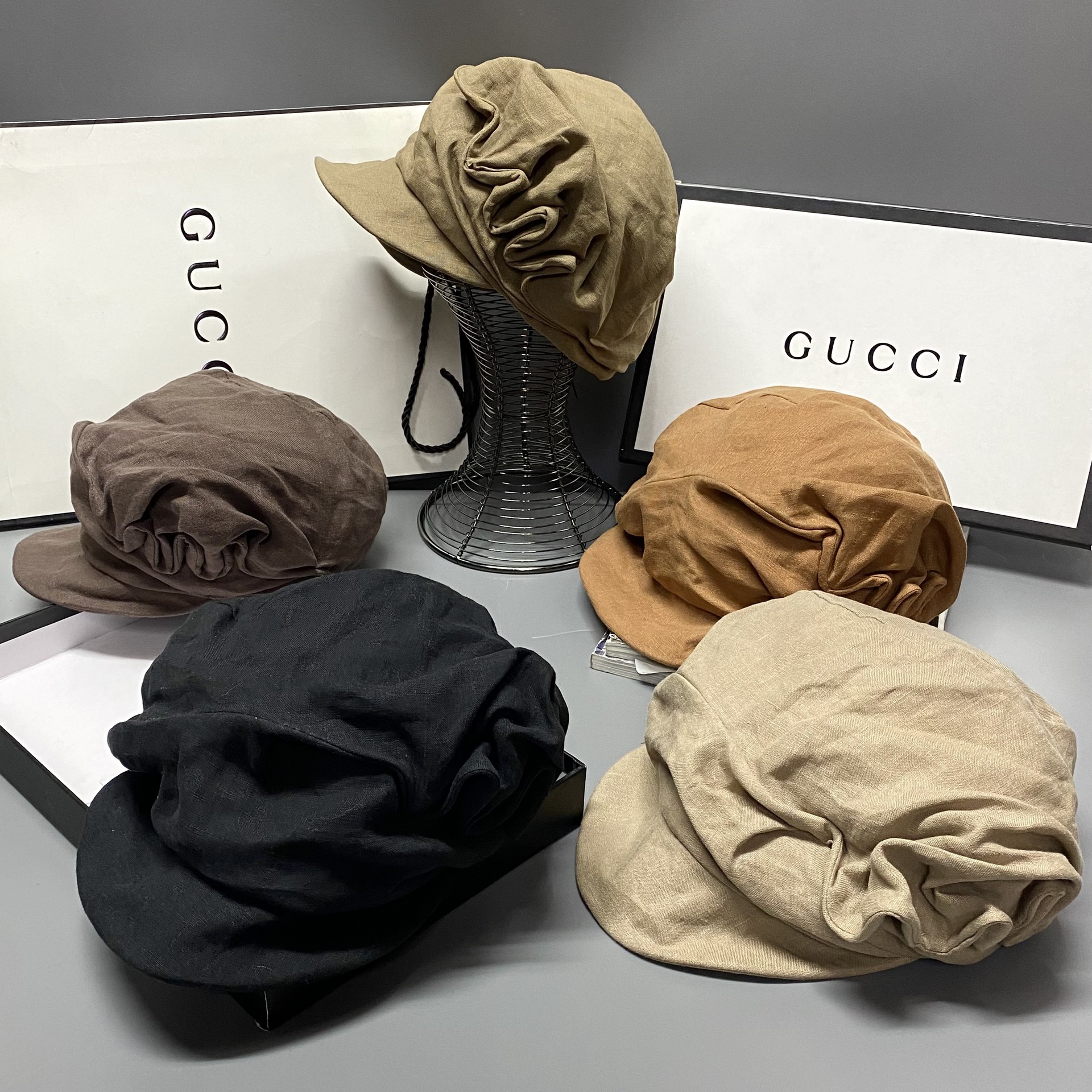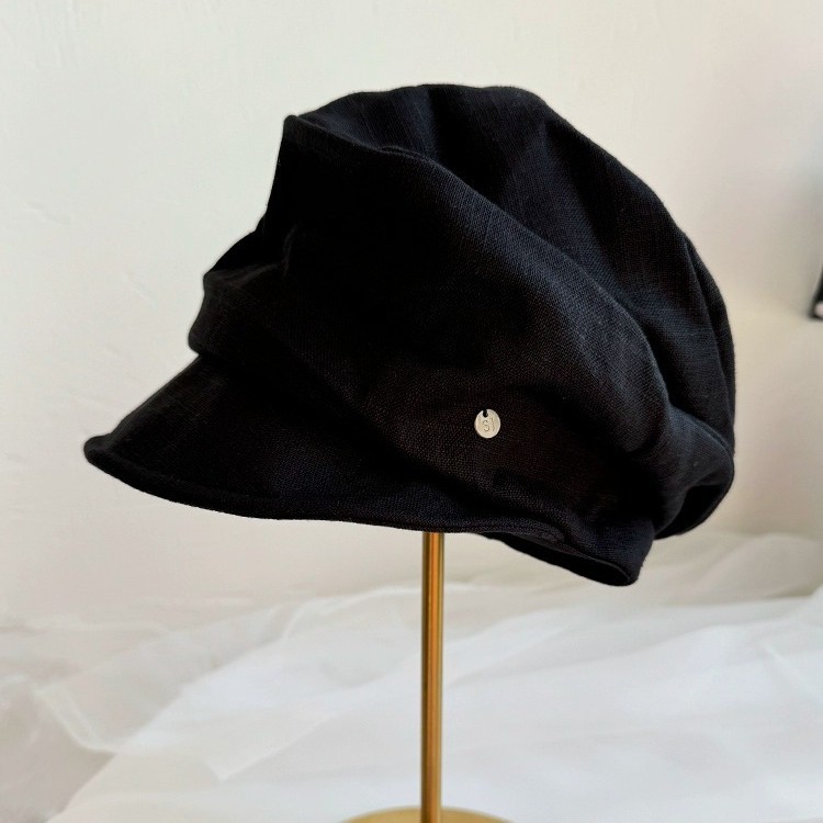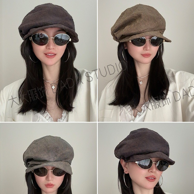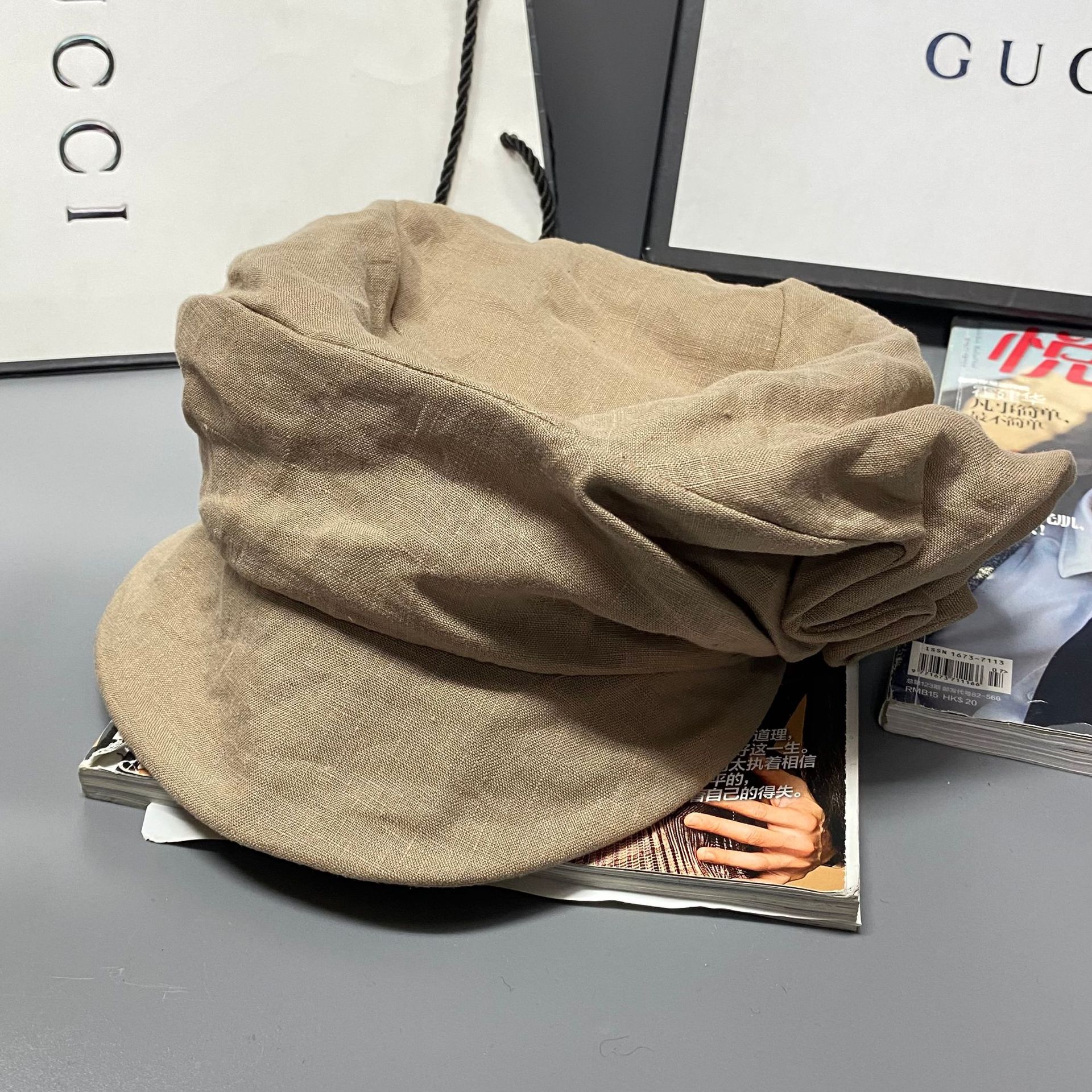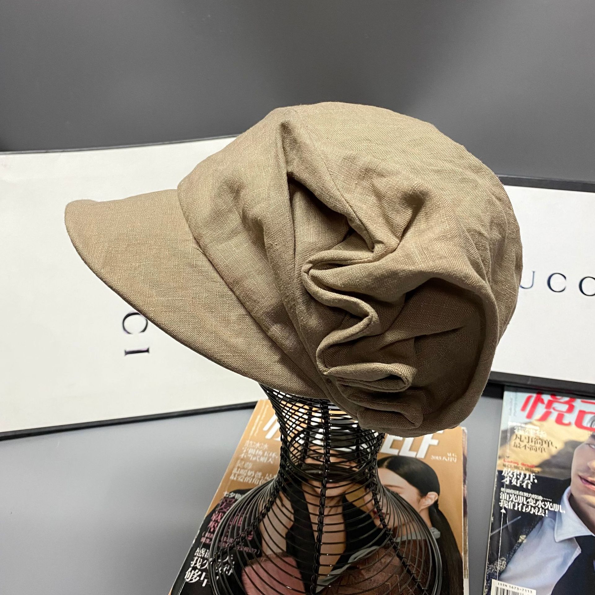 出口日韩2025早秋100%亚麻材质文艺褶皱气质鸭舌帽女秋季复古百搭