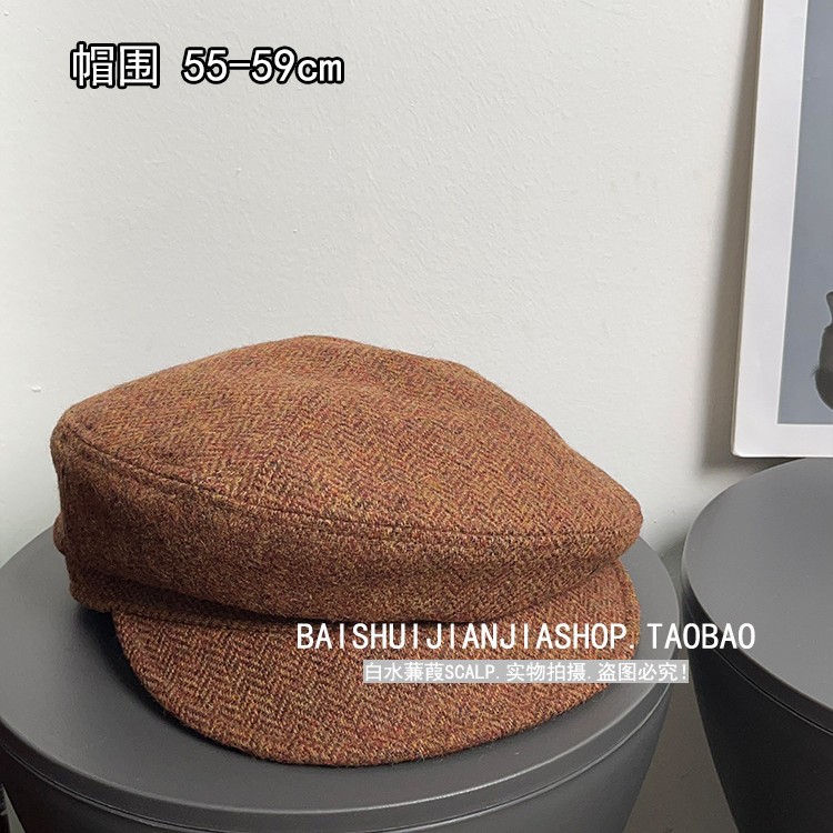 高品质2025新款英伦风羊毛人字呢贝雷帽子女士秋冬季鸭舌帽显脸小