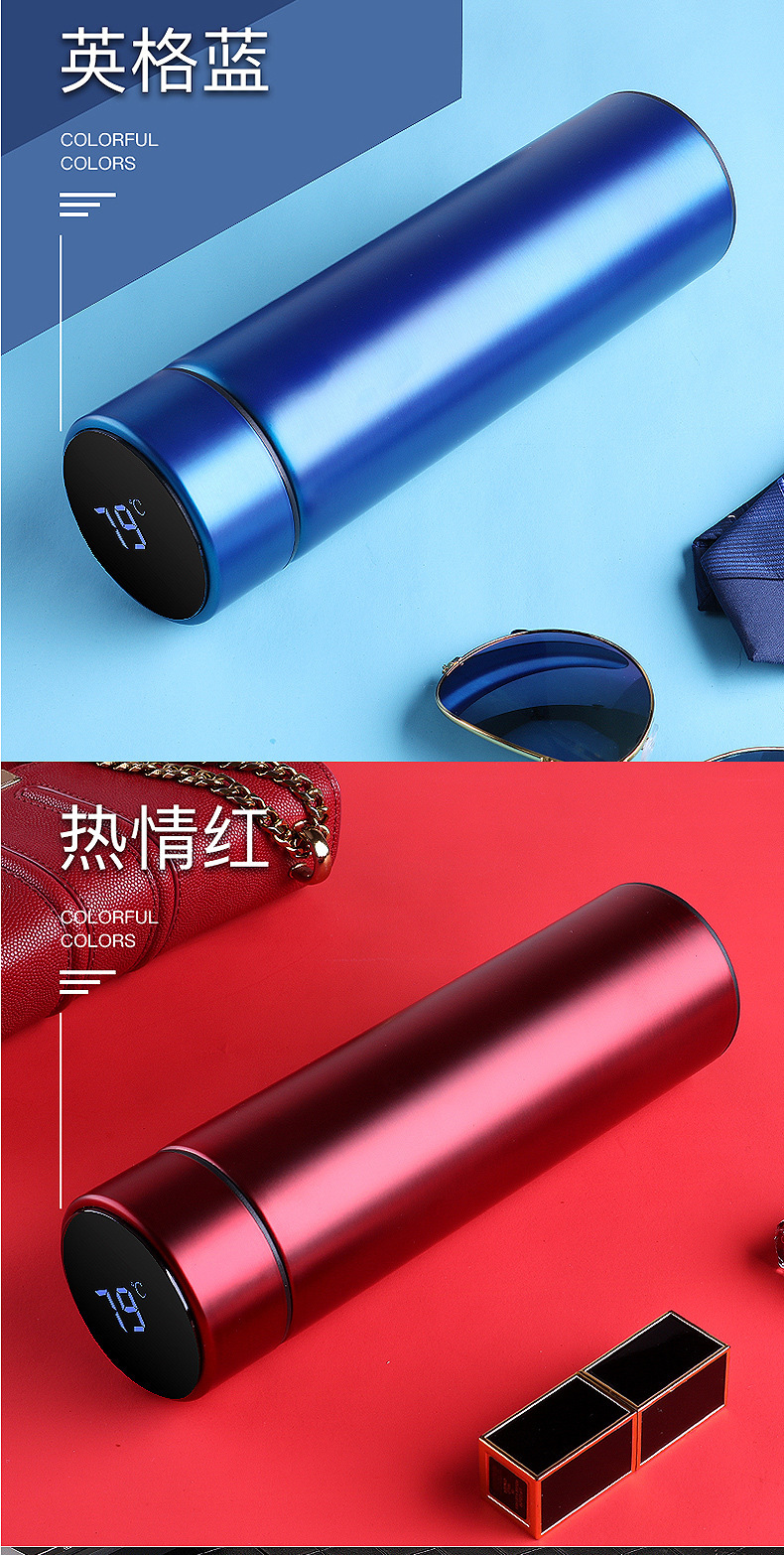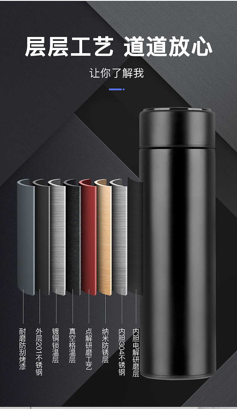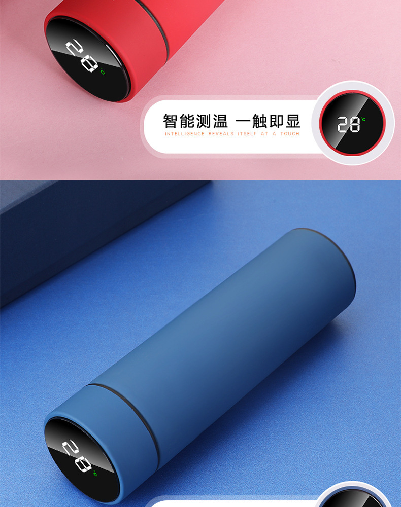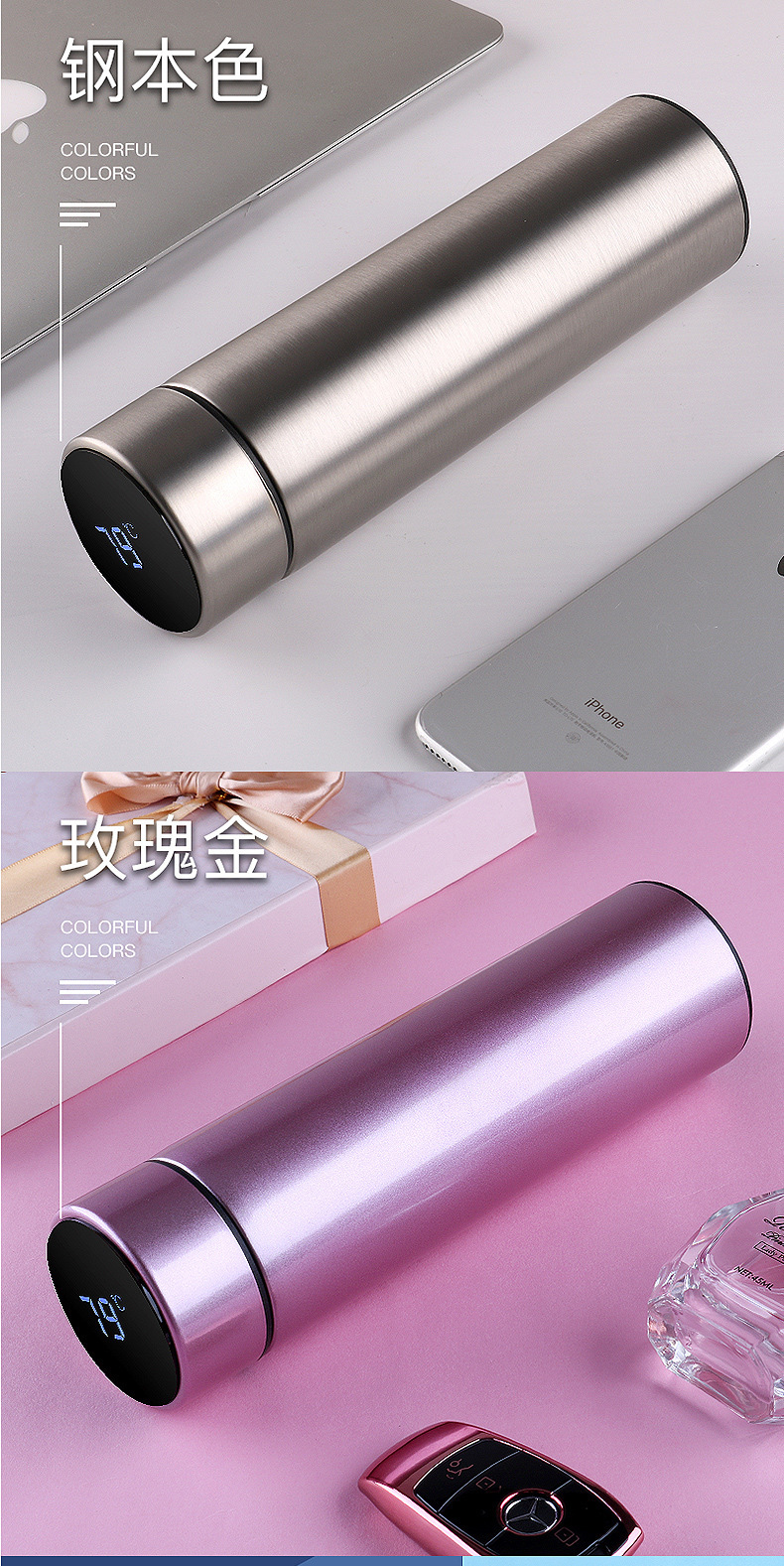 304保温杯磨砂保温杯智能温显不锈钢杯车载橡胶直身杯广告礼品杯