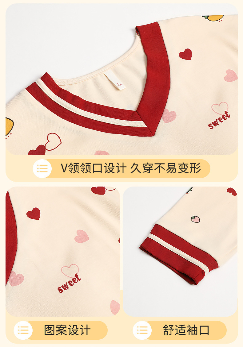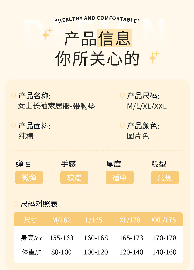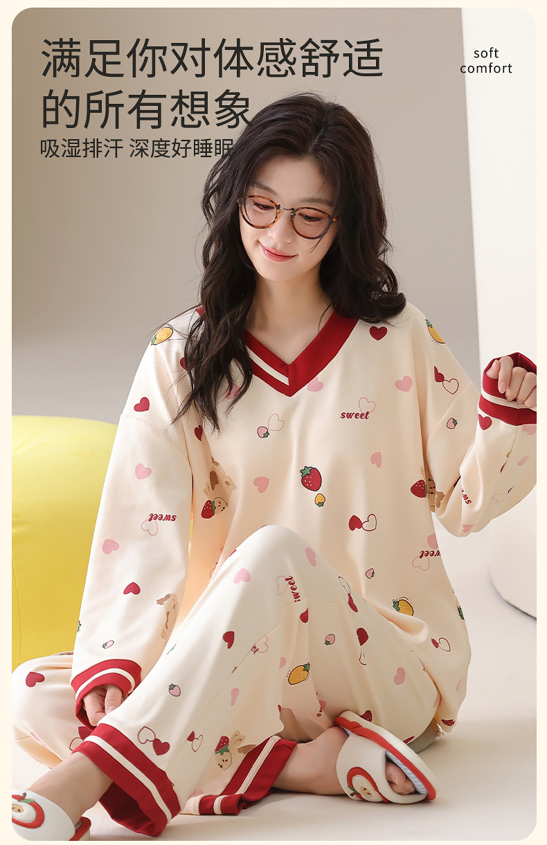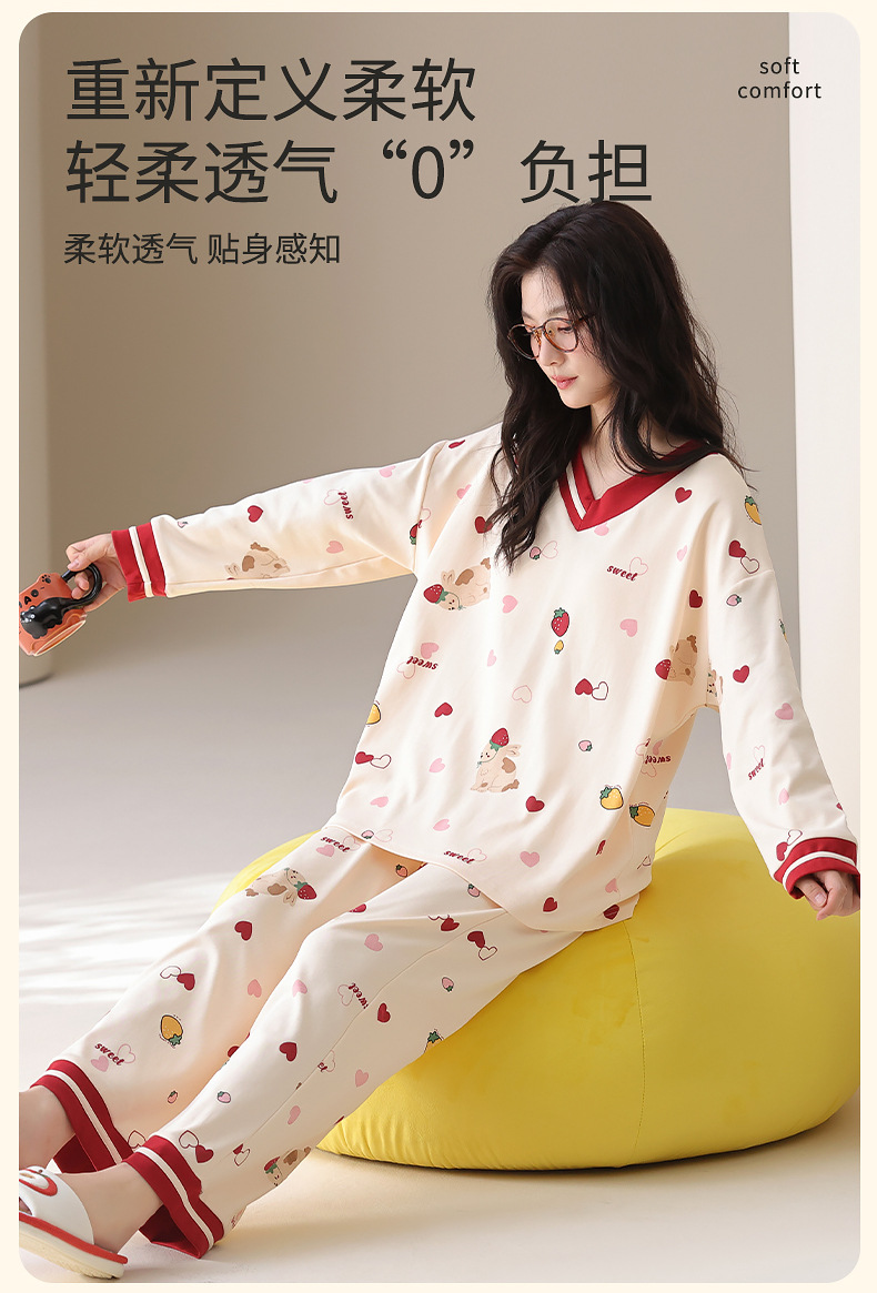 【带胸垫】睡衣女春秋款100%纯棉休闲秋季全棉可爱宽松家居服套装