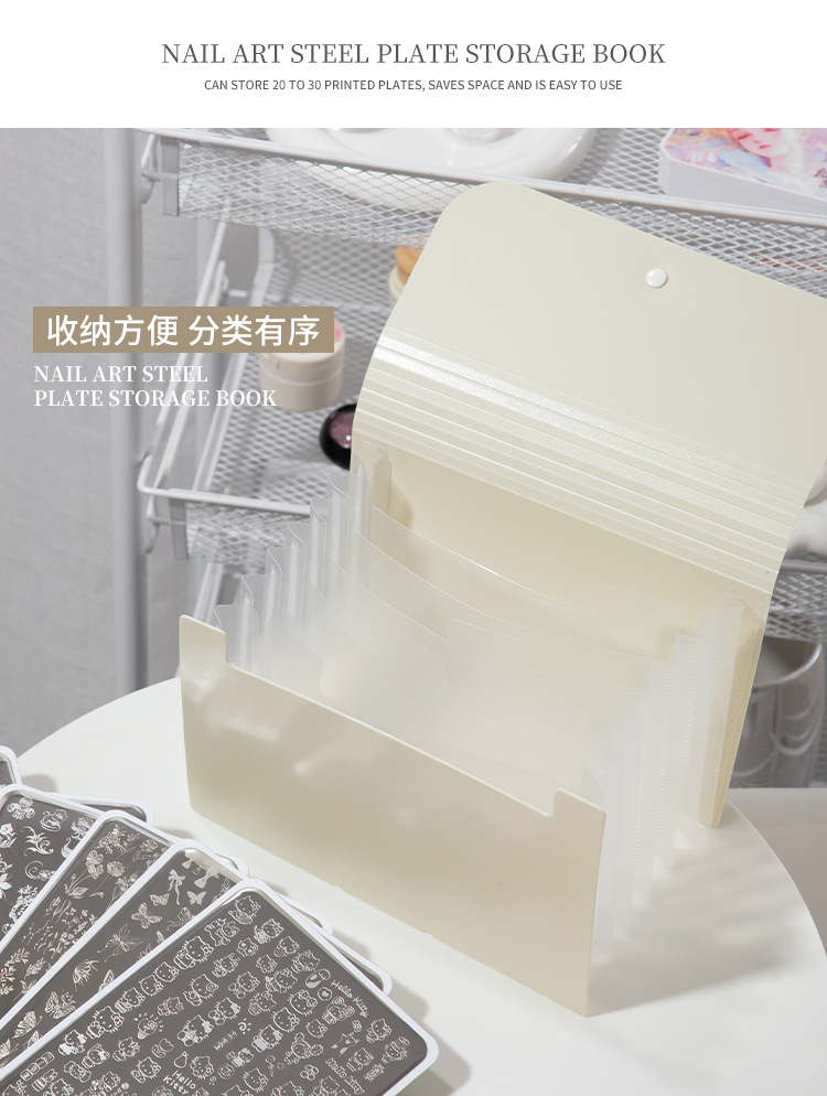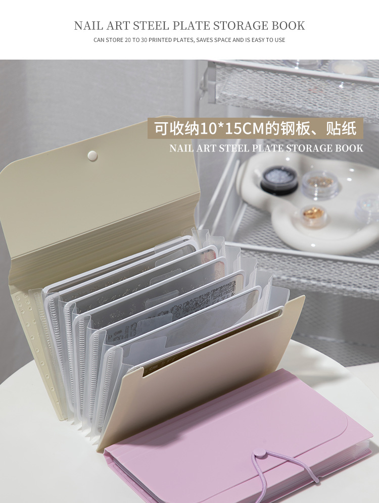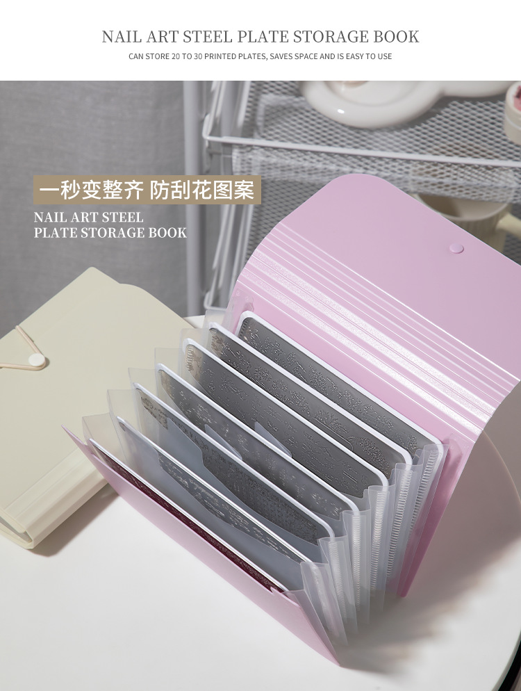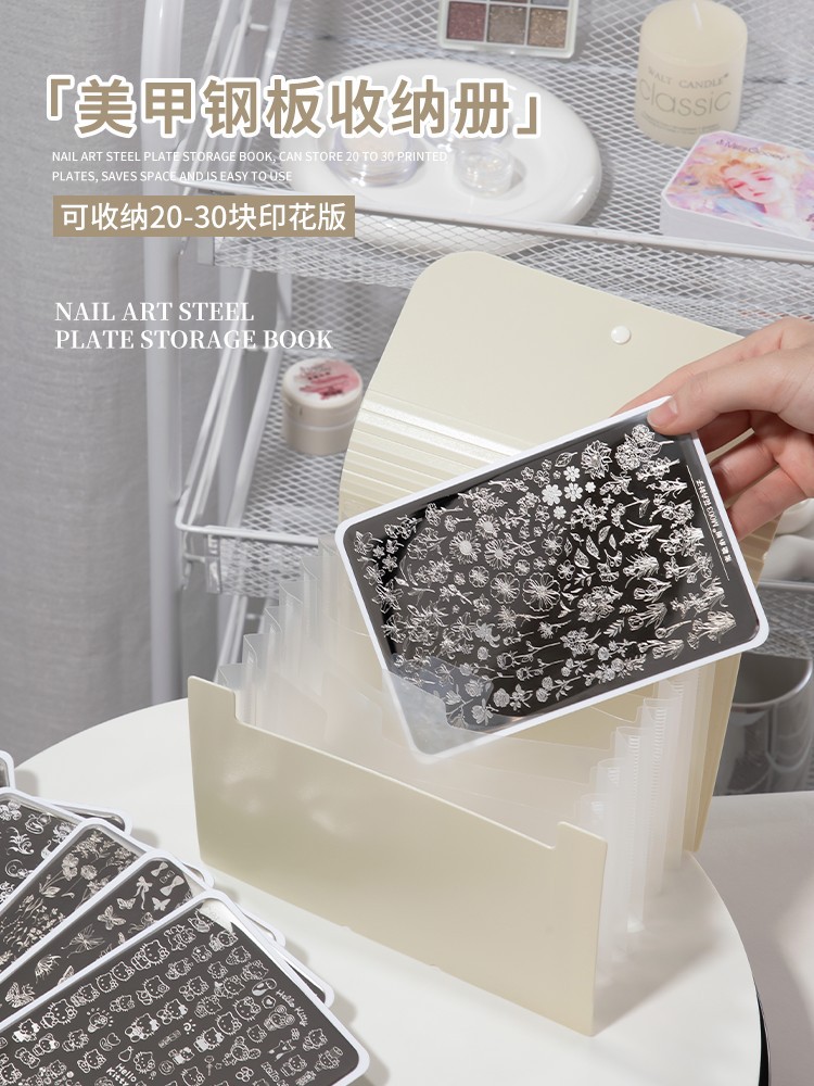 美甲店印花钢板收纳册可折叠防尘透明防刮花指甲贴纸整理专用工具