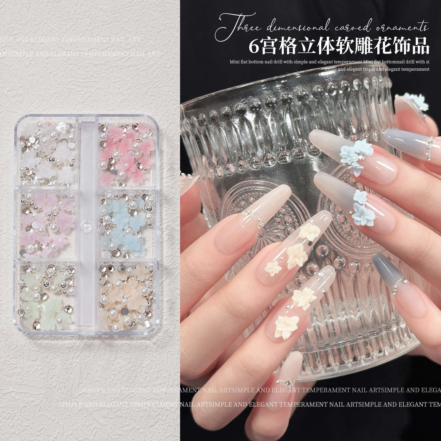 网红爆款美甲饰品国风立体软雕花成品超仙花朵白色混色真美甲饰品