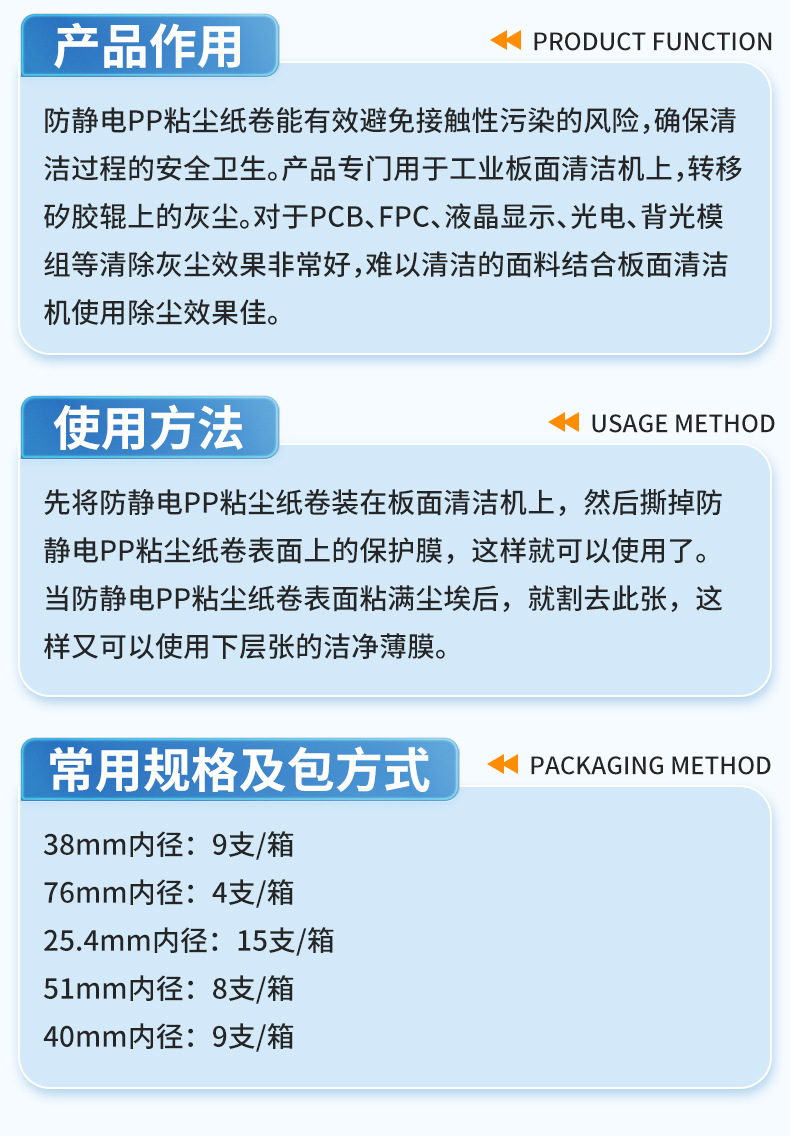 产品名称 pp防静电粘尘纸卷