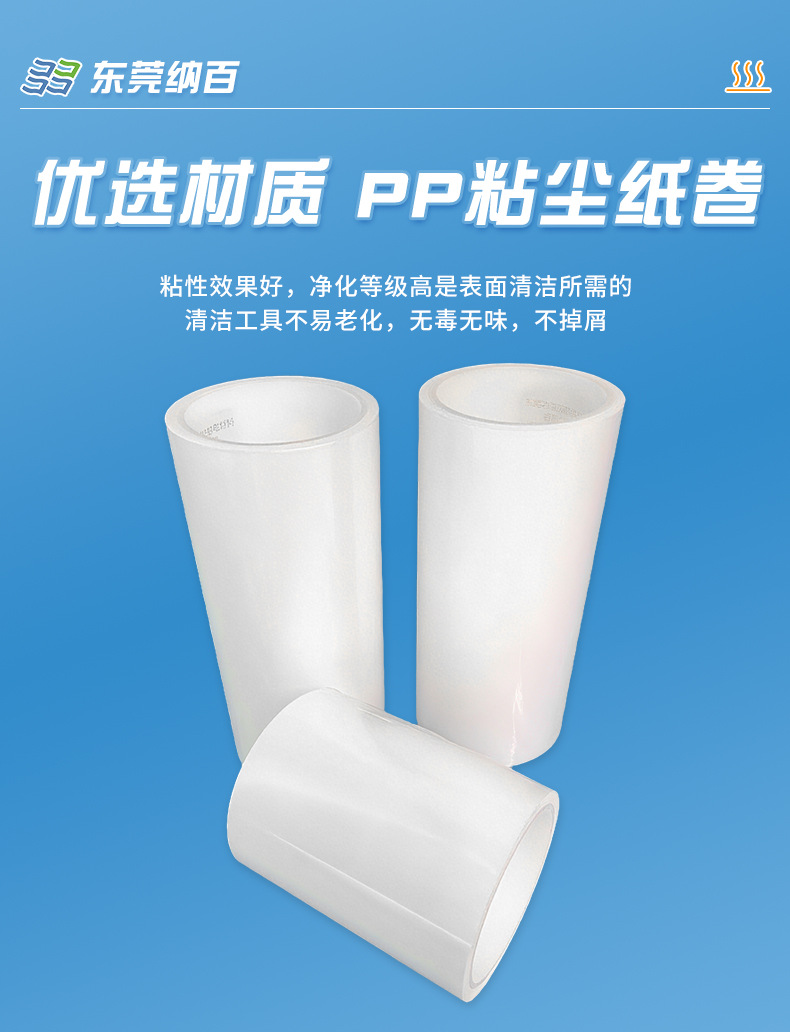PP粘尘纸卷可撕式免刀粘尘滚筒无尘车间清洁机用清洁纸卷粘尘纸卷