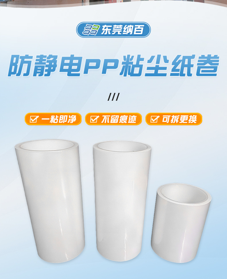 防静电PP粘尘纸卷可撕式工业粘尘滚筒防静电清洁机用除尘滚轮批发