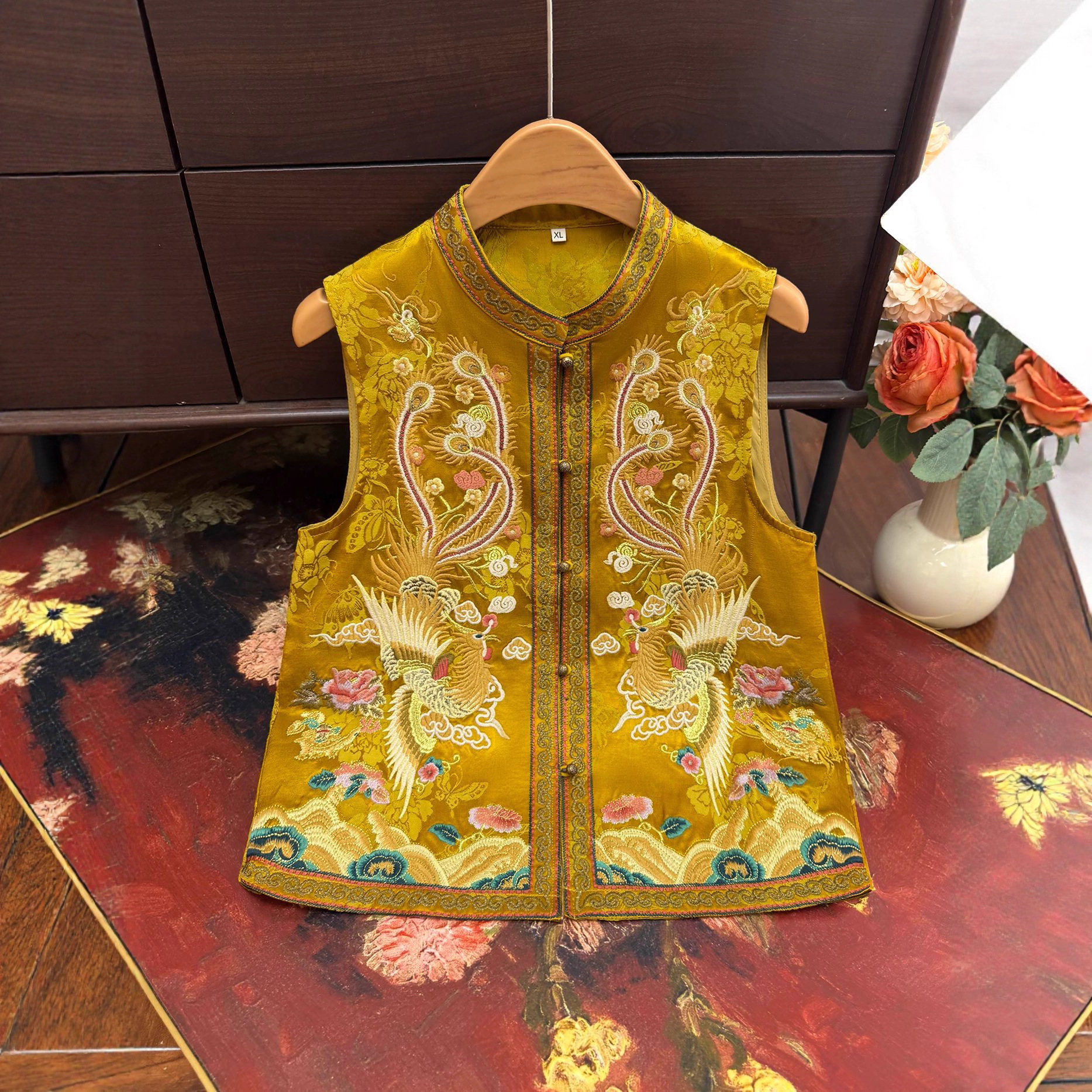 新中式重工刺绣凤凰马甲2025秋季新款圆领盘扣宽松坎肩显瘦马夹女
