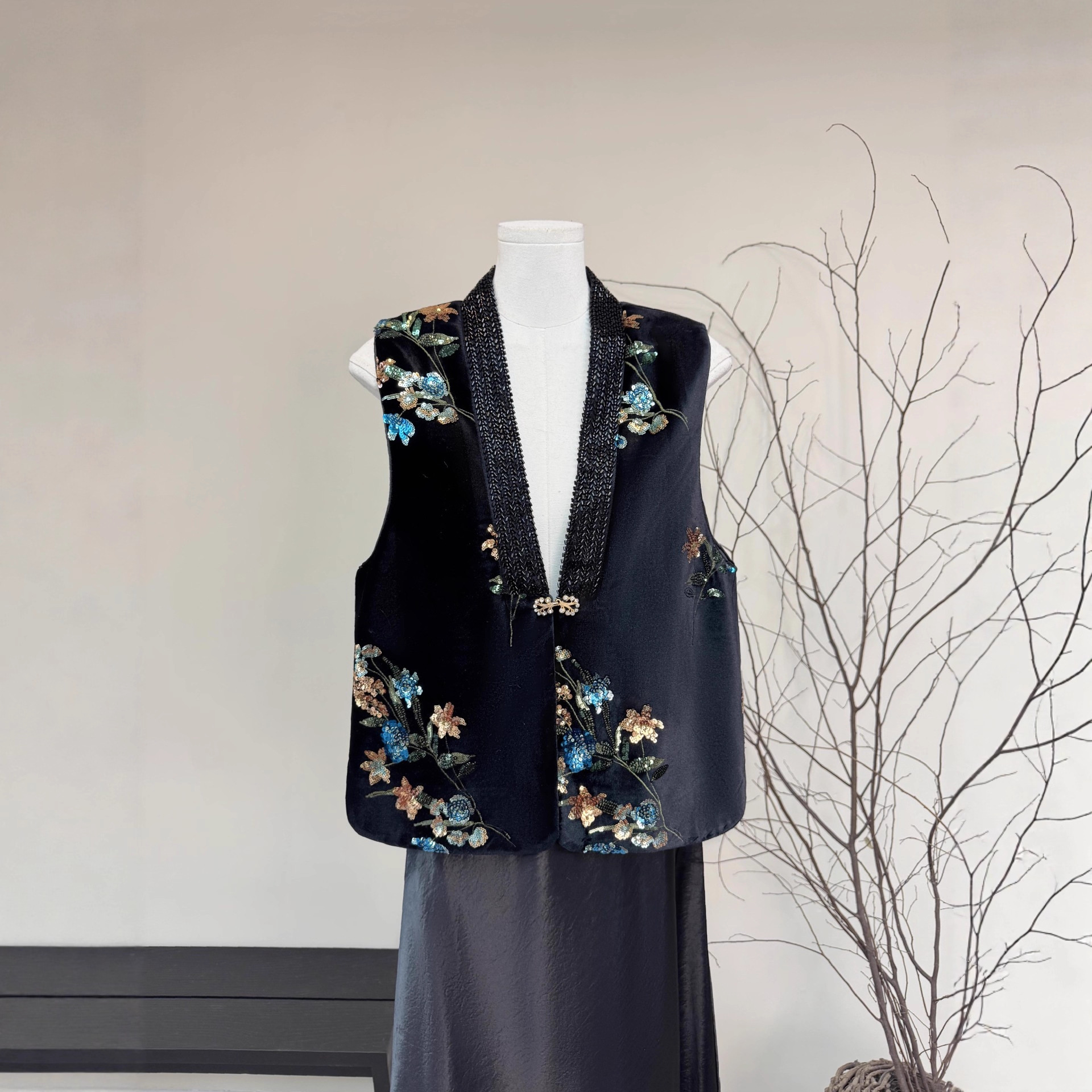 新中式钉珠亮片马甲2025秋季新款国风V领贵气设计感坎肩时尚马夹1