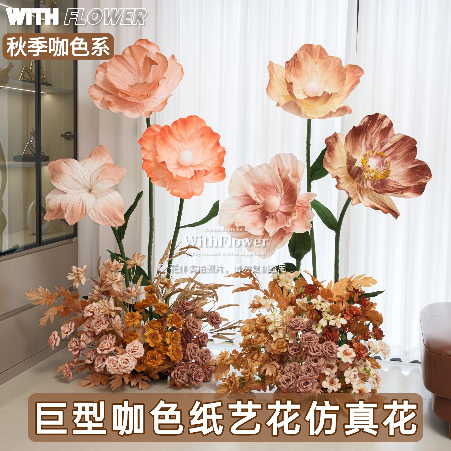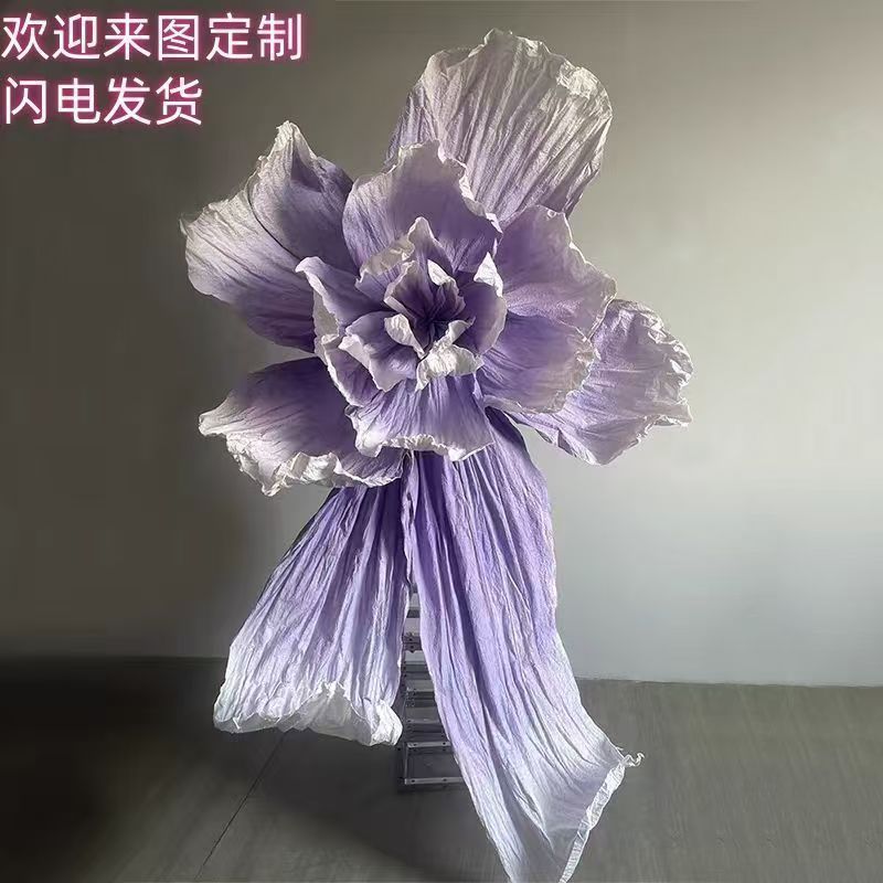 巨型立杆装饰花艺纸花虞美人橱窗婚庆仿真假花婚礼婚房紫色纸艺花