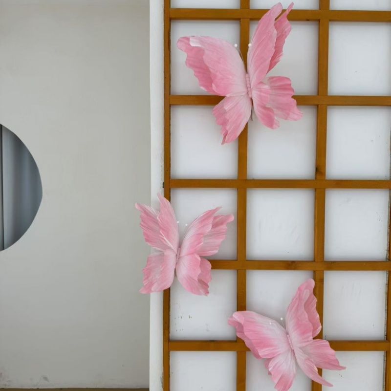 粉色大型蝴蝶装饰巨型纸艺橱窗美陈立体布置道具婚庆婚礼仿真花