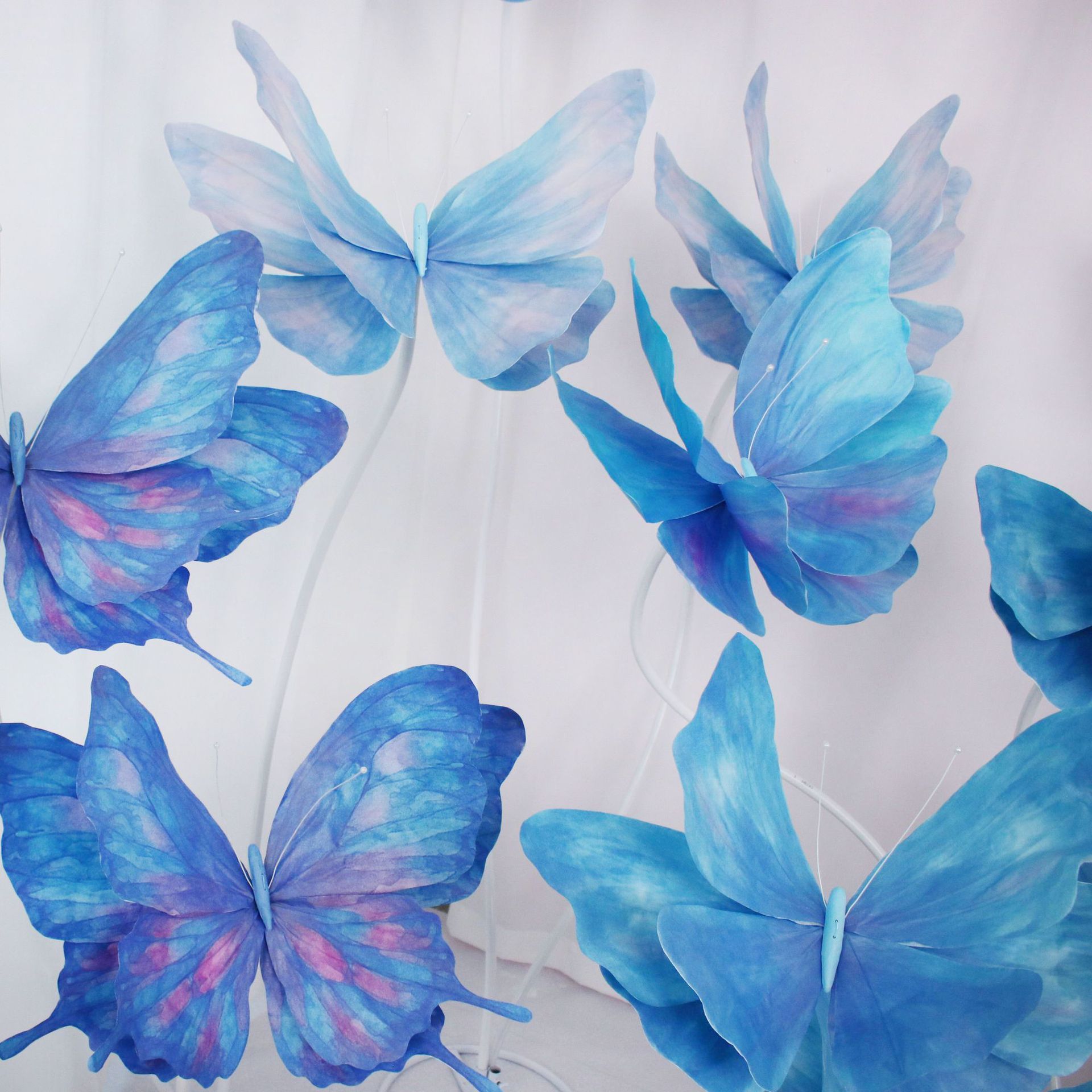 仿真立体蓝色花蝴蝶纸艺大型婚礼橱窗美陈道具布置装饰摄影婚庆