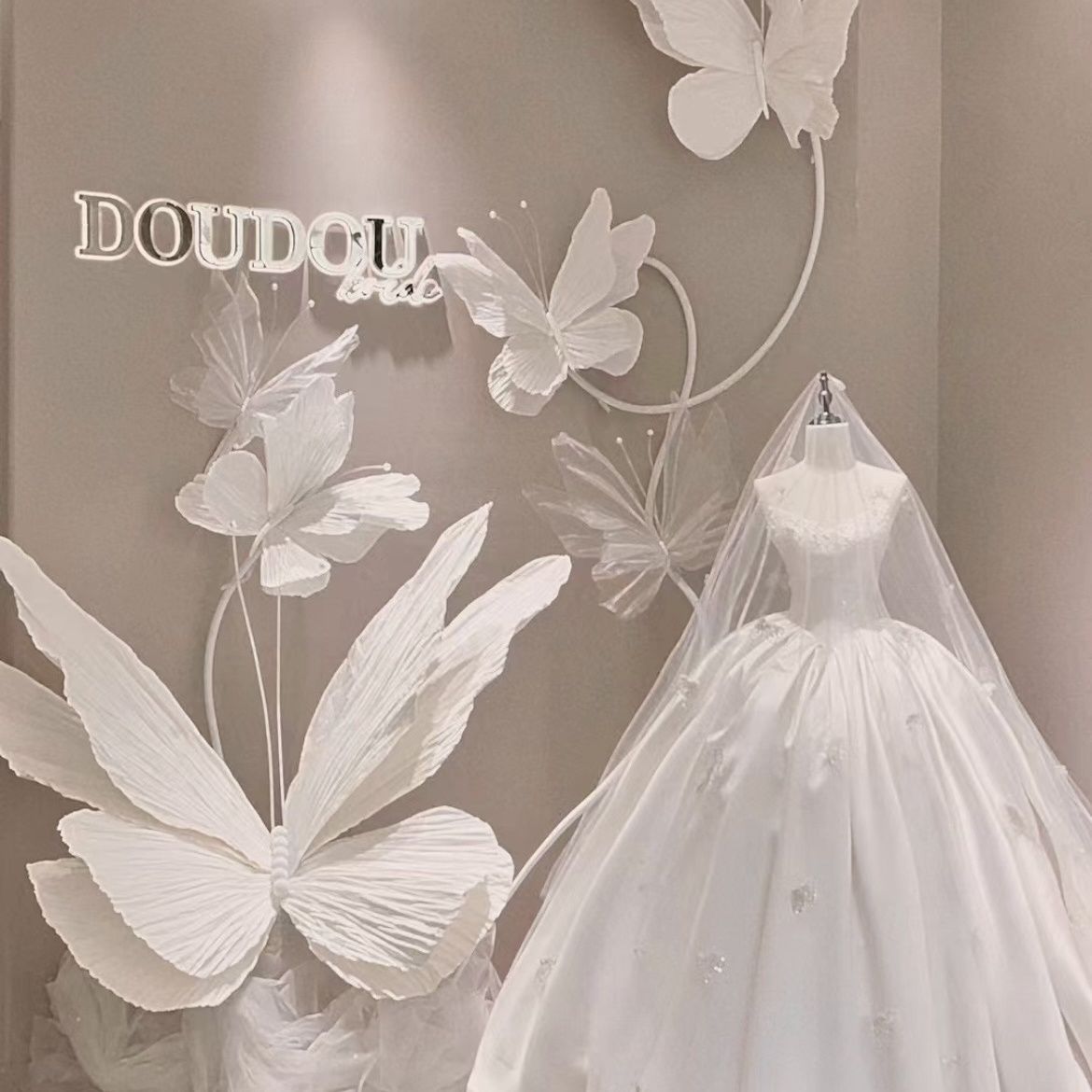 新款纯白色蝴蝶婚礼手工婚庆大型巨型布置背景美陈橱窗装饰道具