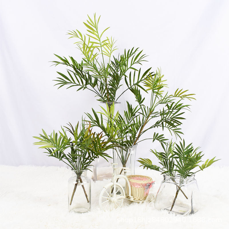 擬似植物の単枝の尖った葉を撮影して、偽の葉の緑を植えて花を植えて、緑の葉の客間のデスクトップの装飾を配合します。