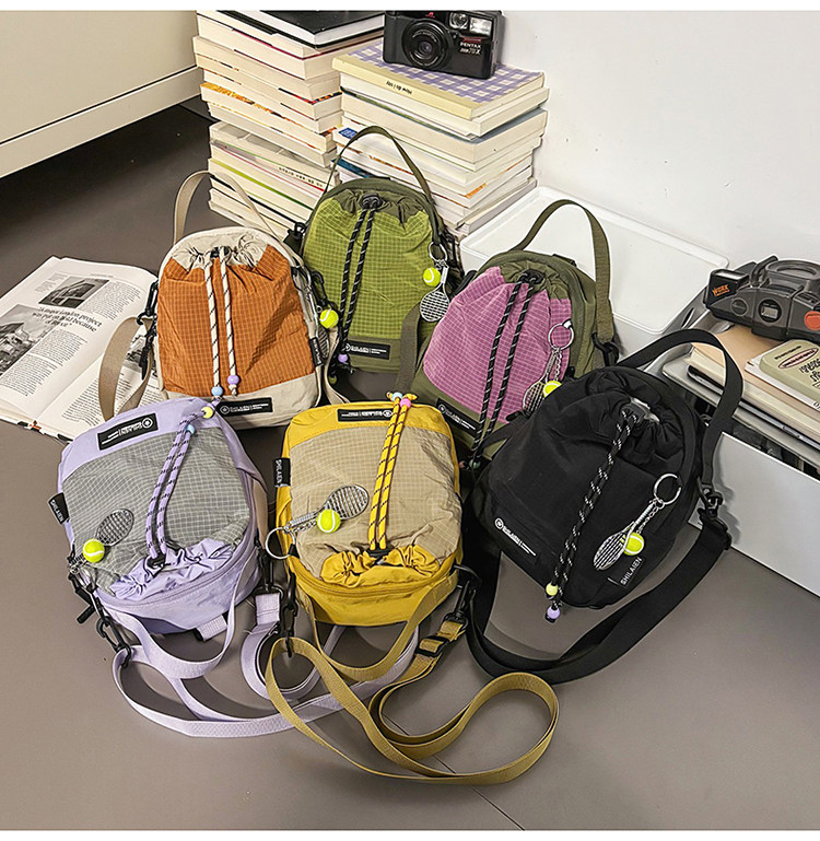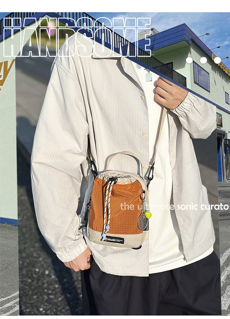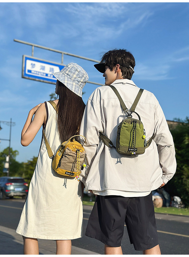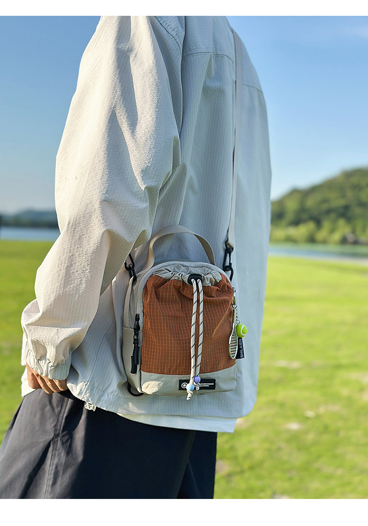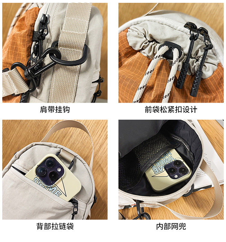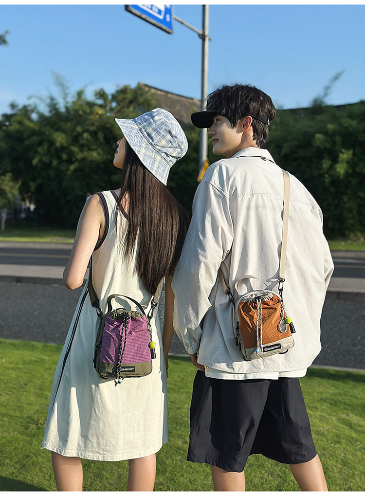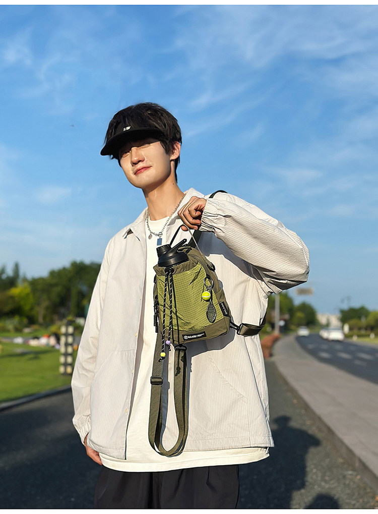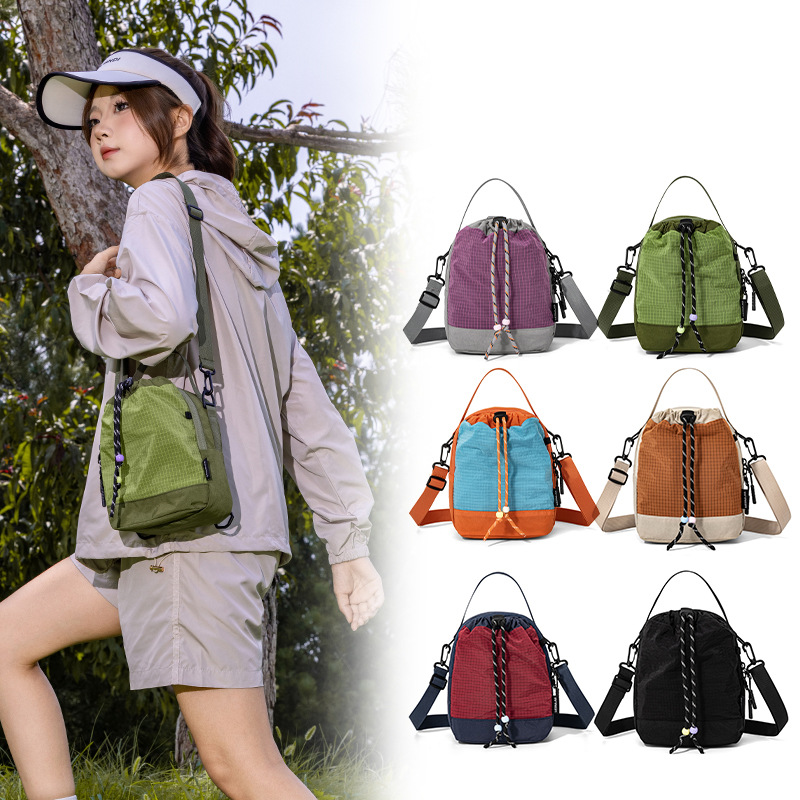 新款户外骑行斜挎包抽绳多功能手机包骑行旅行露营水杯男女款包包