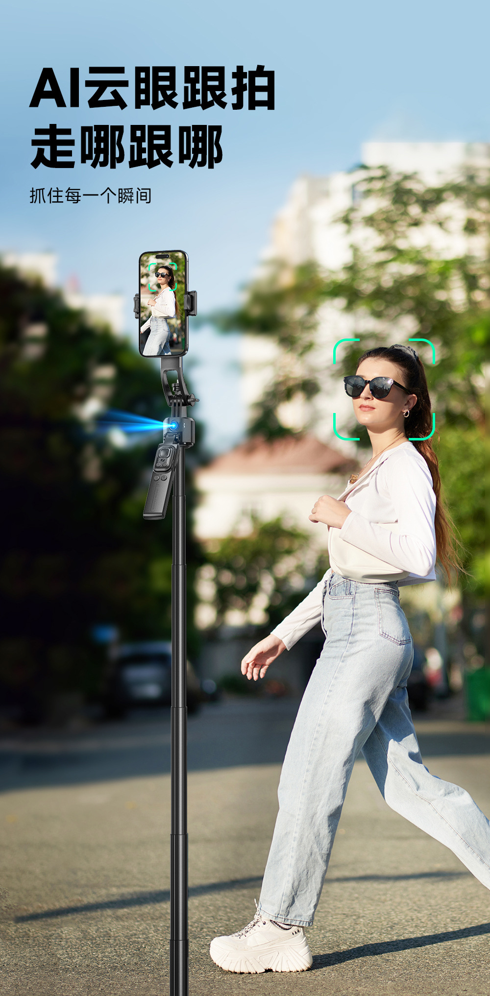 云台跟拍神器自拍杆防抖可伸缩三脚架人脸追踪蓝牙拍照手机支架
