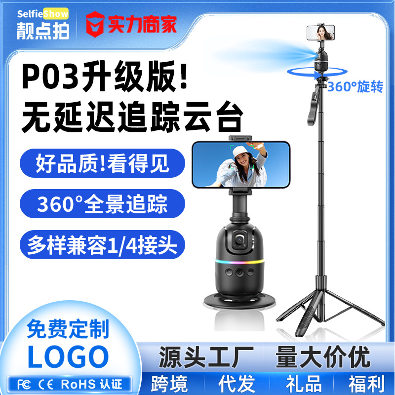 P03跟拍云台神器自拍杆人脸识别人形追踪直播拍摄神器防抖三脚架