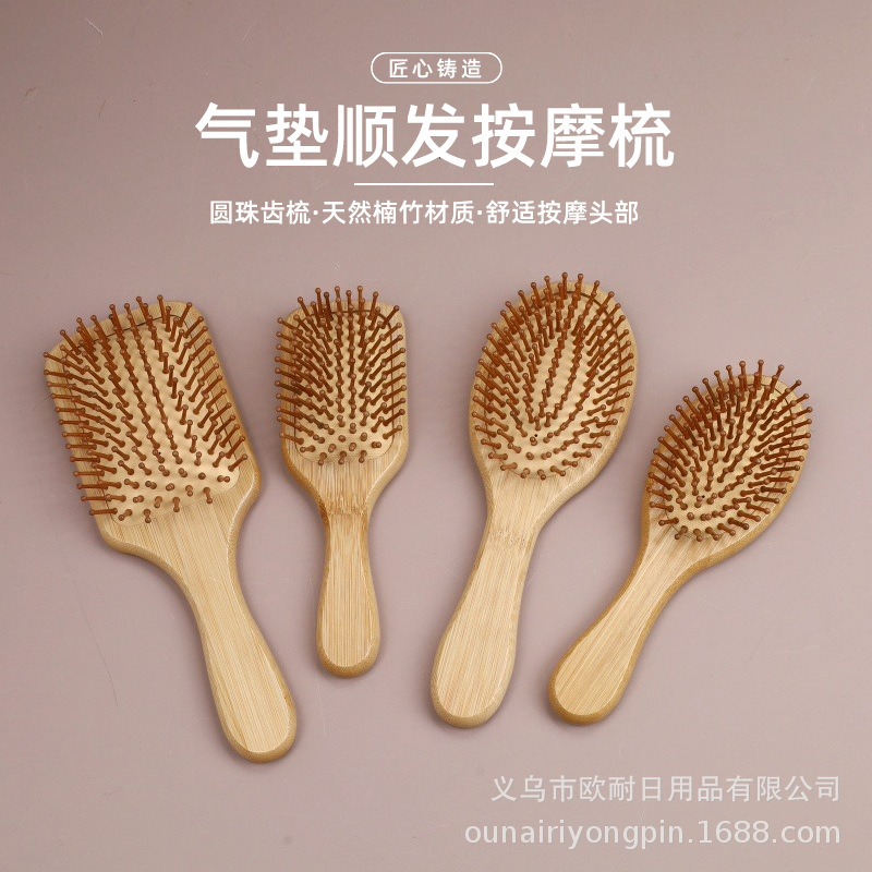 工厂现货批发楠竹气垫按摩梳家用头部按摩梳便携顺发造型气囊梳子