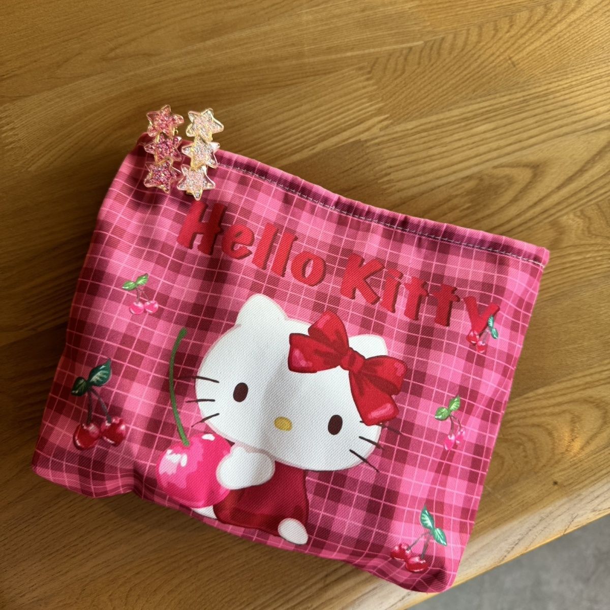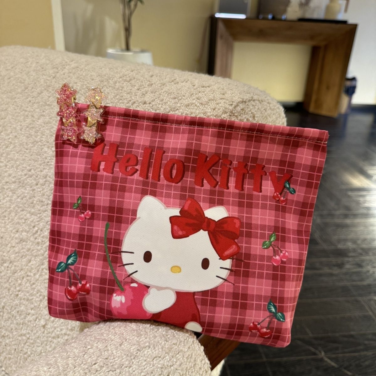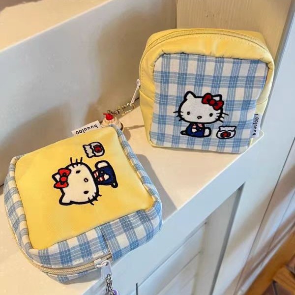 刺绣kitty化妆包拼色可爱卡通小方包姨妈巾杂物便携内胆手拿小包