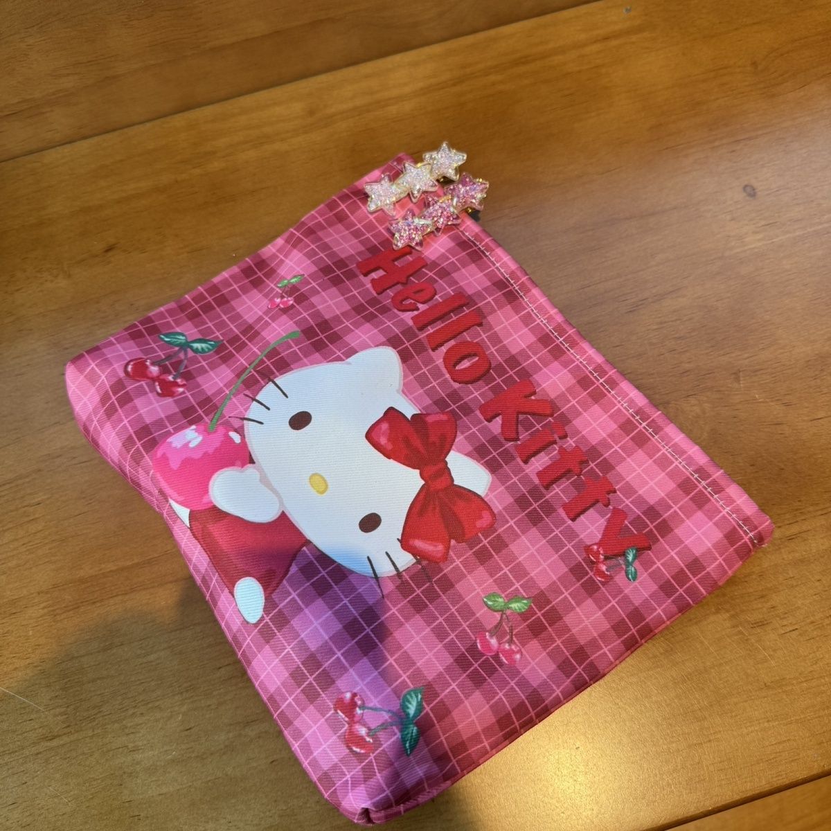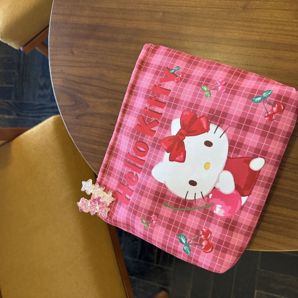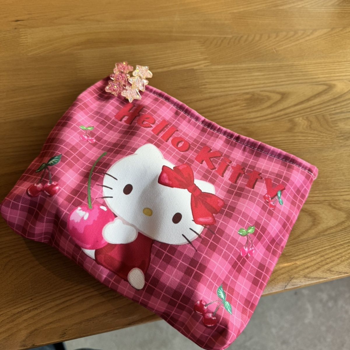 刺绣kitty化妆包拼色可爱卡通小方包姨妈巾杂物便携内胆手拿小包