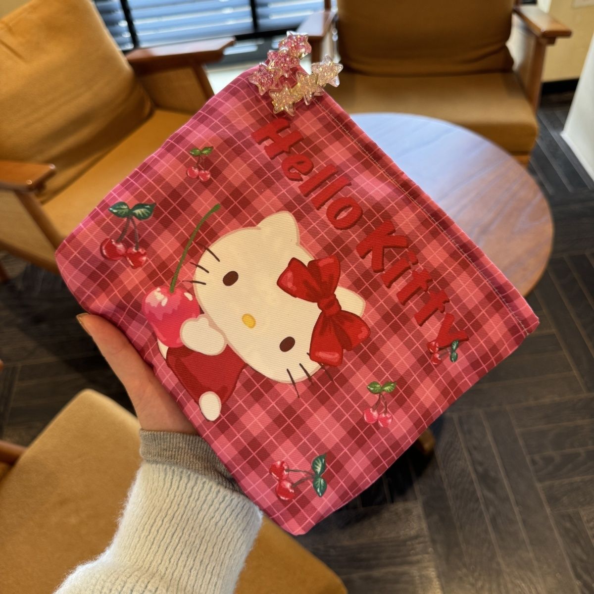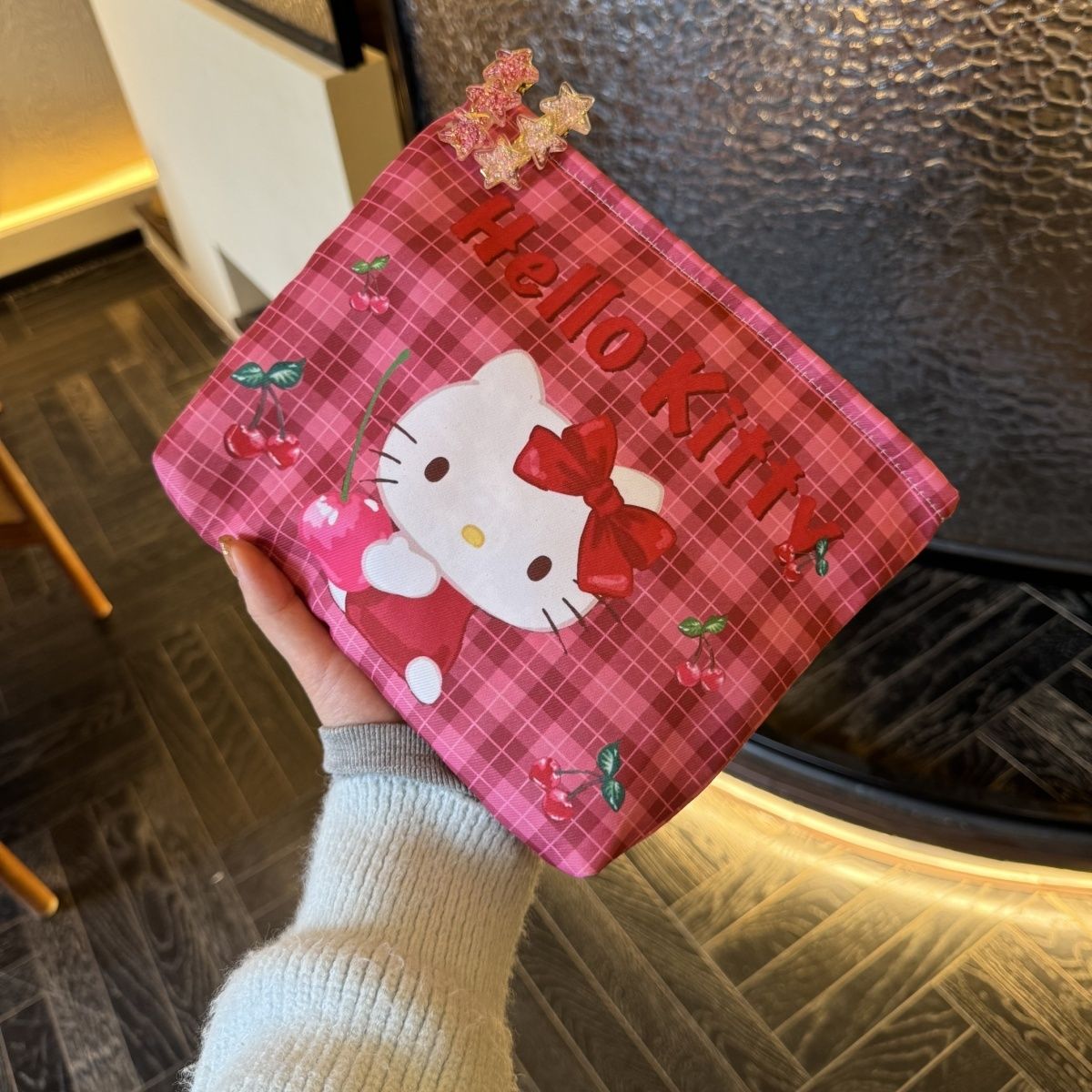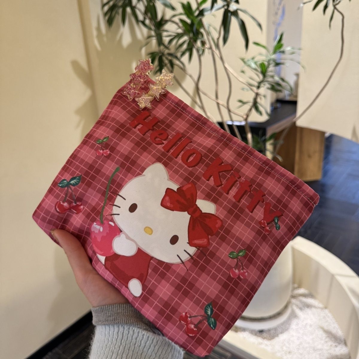 新款蓝色格子kitty猫手拿包高颜值旅行百搭大容量帆布化妆收纳包