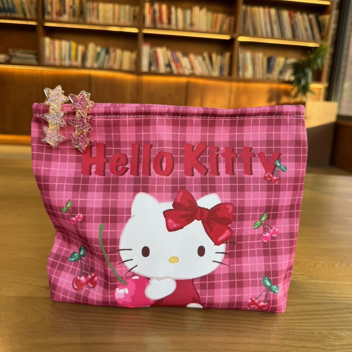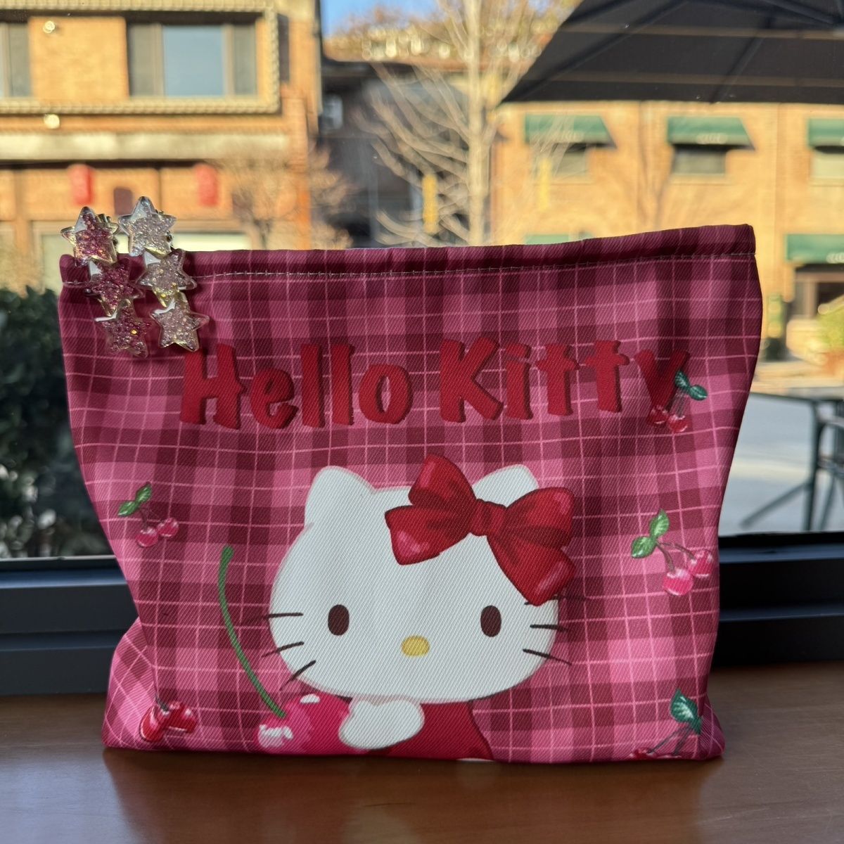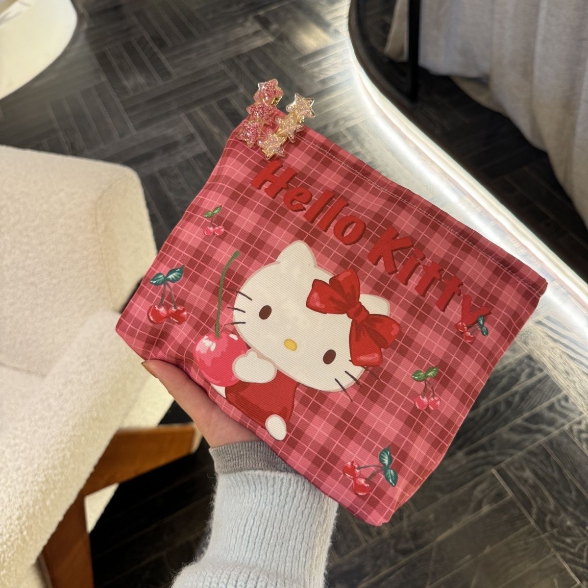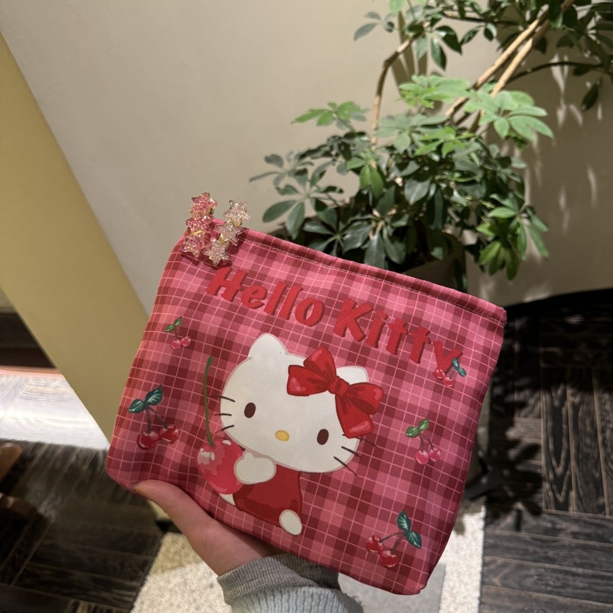 原创小众复古格子凯蒂便携大容量化妆包卡通收纳便捷整理爆款男棉