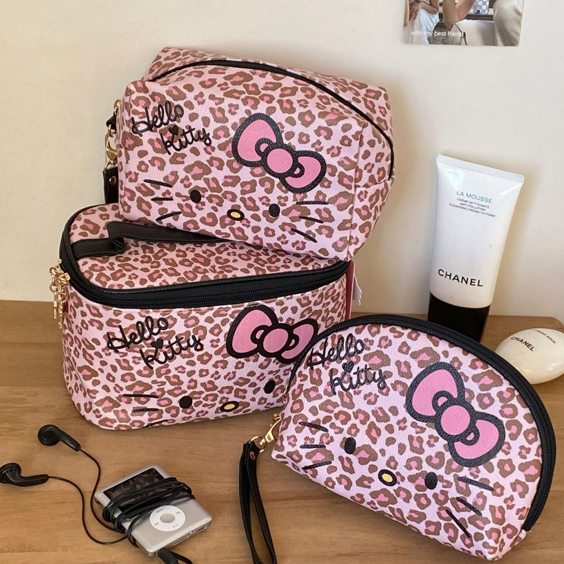 豹纹猫咪化妆包女2025新款便携外出大容量化妆收纳包手提式洗漱包