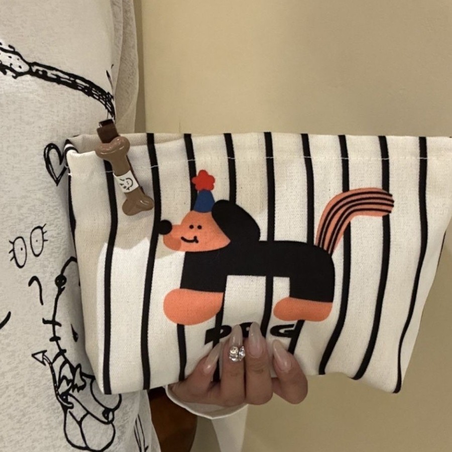 ストライプ柄のダックスフント柄収納バッグ、大容量化粧ポーチ、女子学生用インナーバッグ、ハンドバッグ、キャンバス製化粧品バッグ