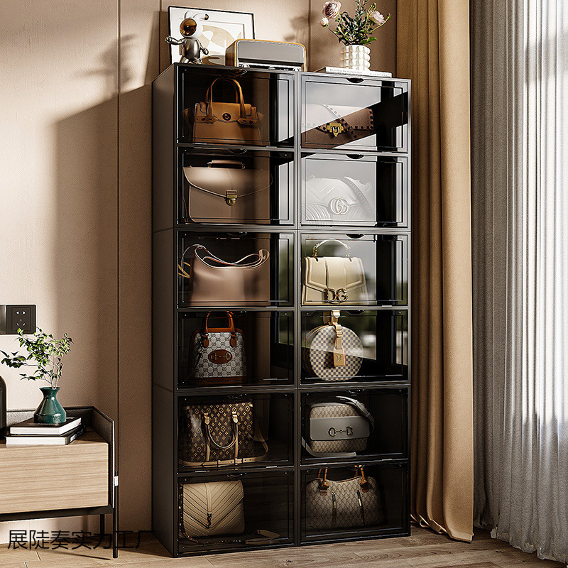 バッグ収納アーティファクト収納ボックスホームオーガナイザーリビングルーム透明床置きディスプレイキャビネットダストボックス収納ラックバッグキャビネット