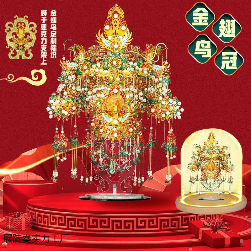 Pinku ゴールデンフェニックスクラウンメタル組み立てモデル 10 マイルレッドメイクパズル立体パズルフェニックスクラウン DIY 手作り