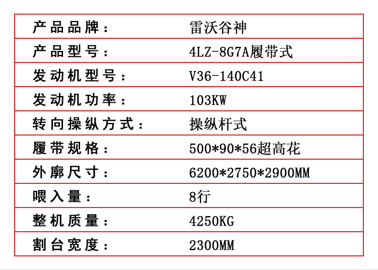 全新款雷沃谷神领航RG3085收割机农用玉米水稻多功能收获机收割机