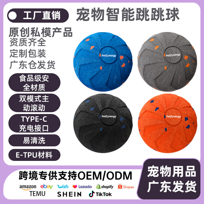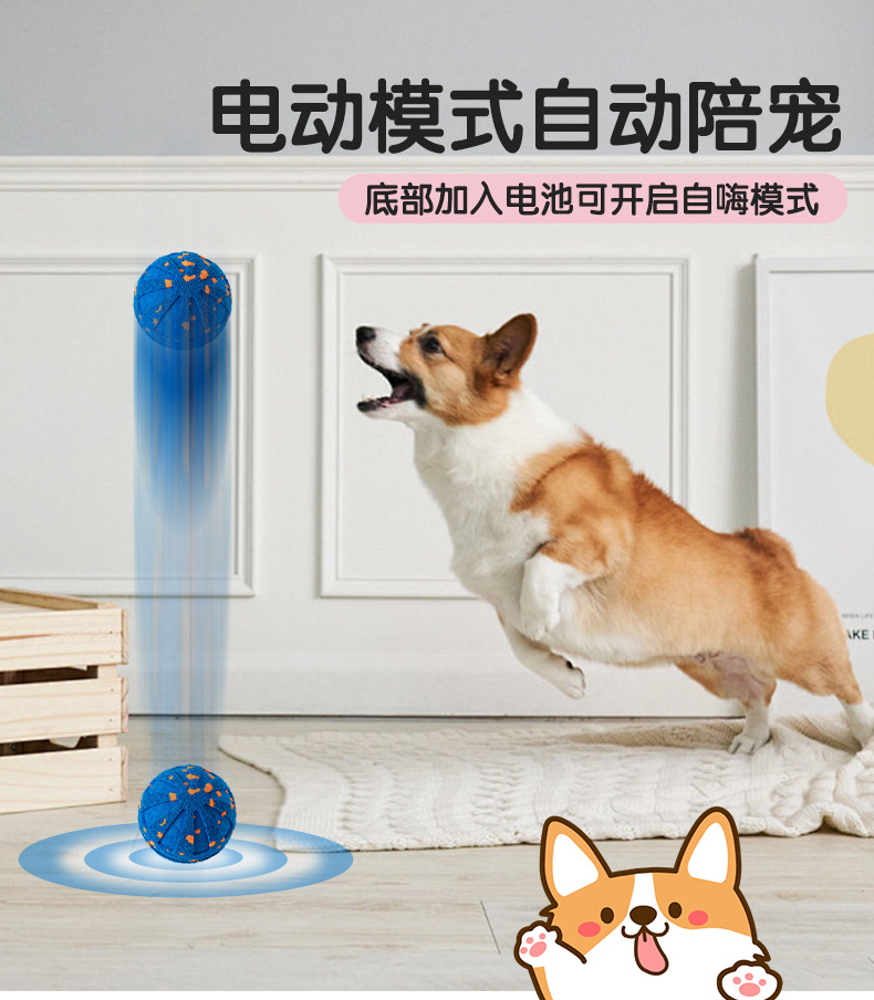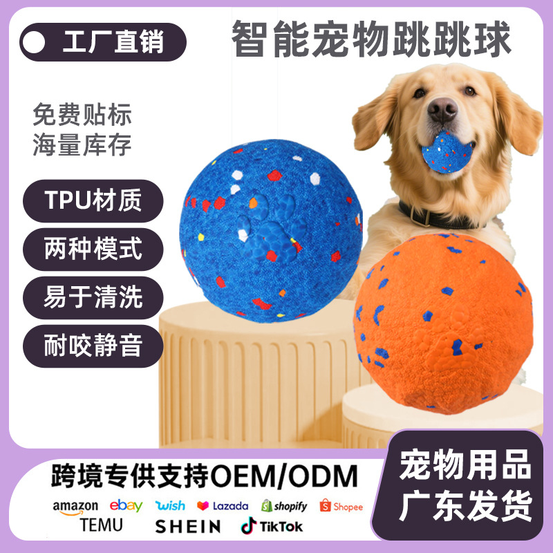 跨境狗狗玩具球ETPU自动遛狗耐咬逗猫中大型犬跳跳球电动爆爆球