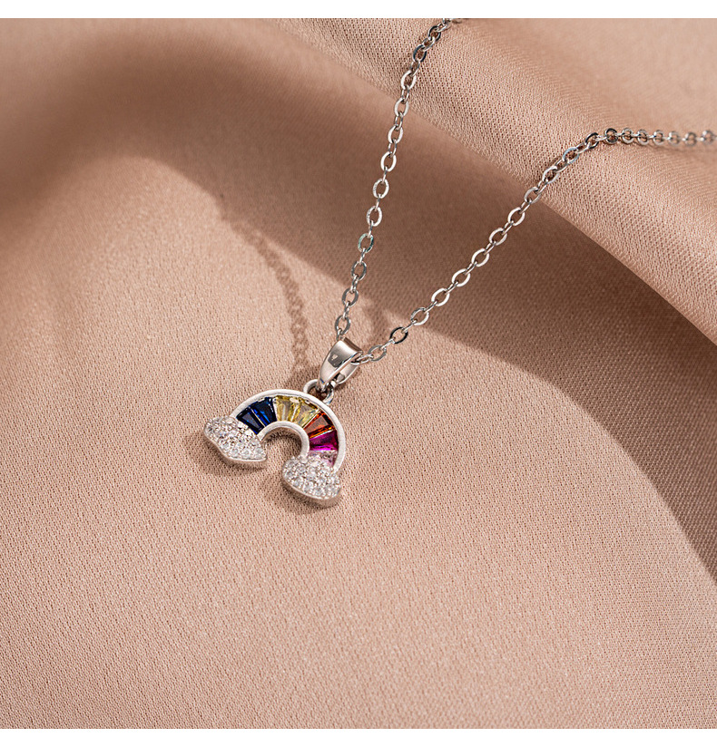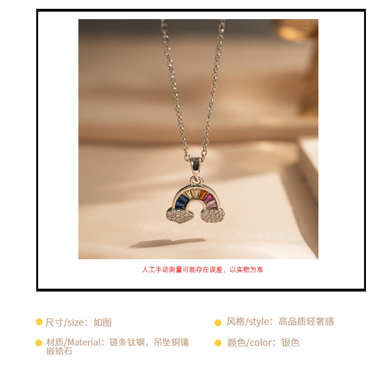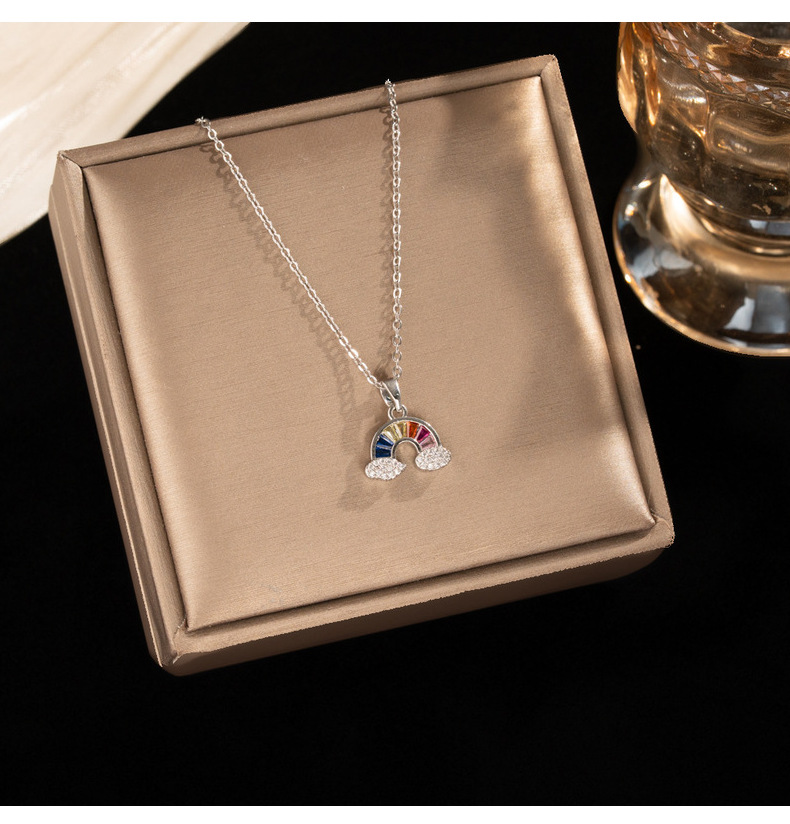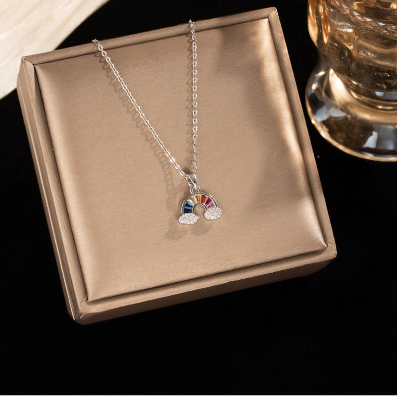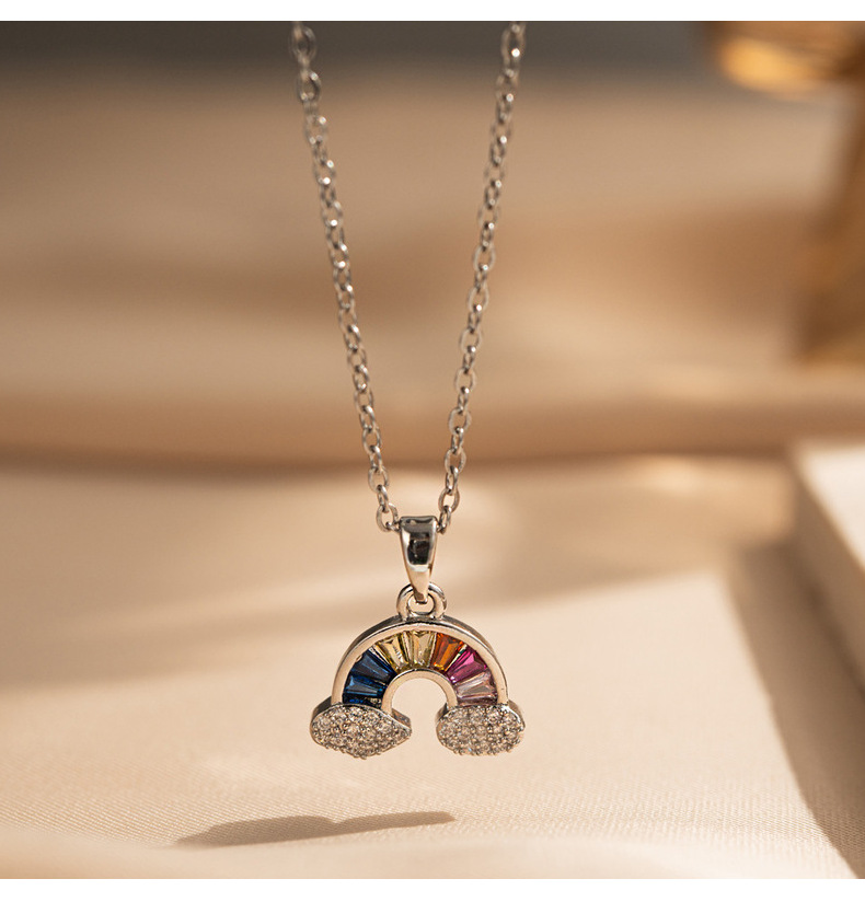 韩版银色镶嵌锆石彩虹项链女精致百搭高品质流行锁骨链校园风饰品