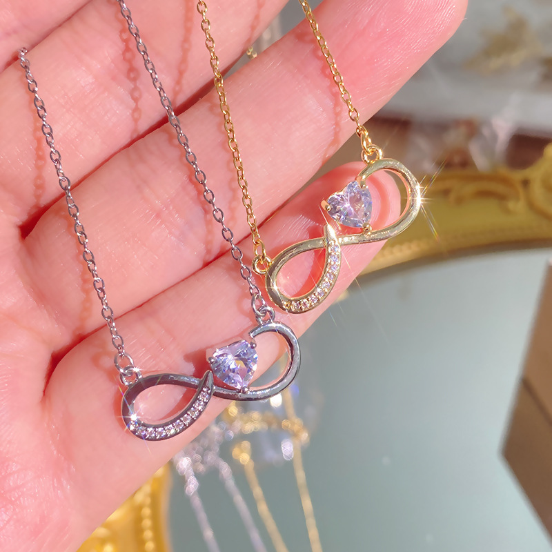 跨境爆款无穷大爱心钛钢项链女镶嵌锆石满钻锁骨链轻奢感轻奢风