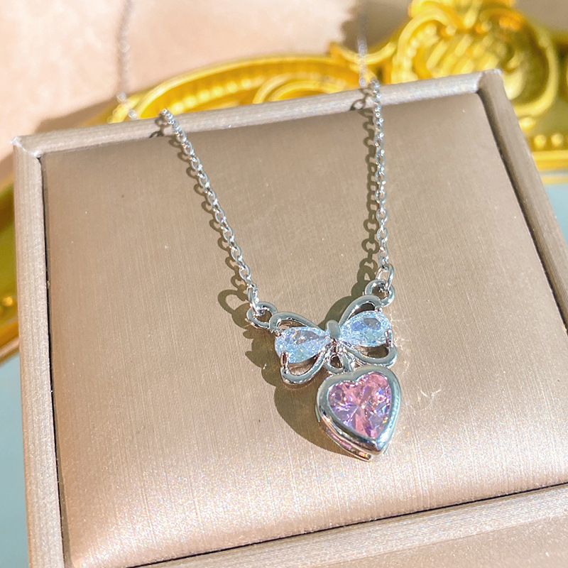森系甜美蝴蝶结粉钻爱心微镶项链女精致百搭高级感超仙新款锁骨链