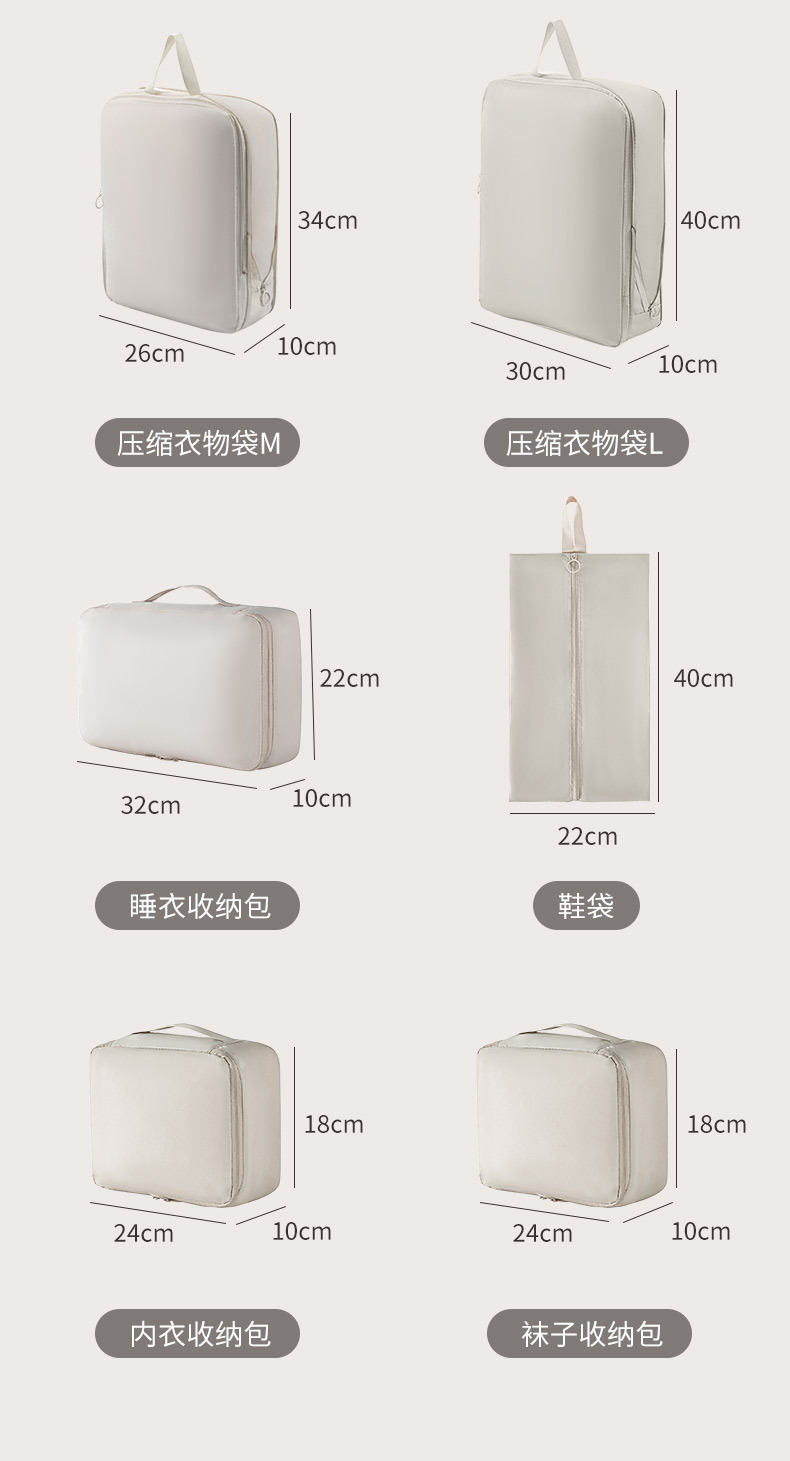 跨境旅行收纳包压缩行李箱收纳六件套洗漱化妆品分装袋衣物整理包
