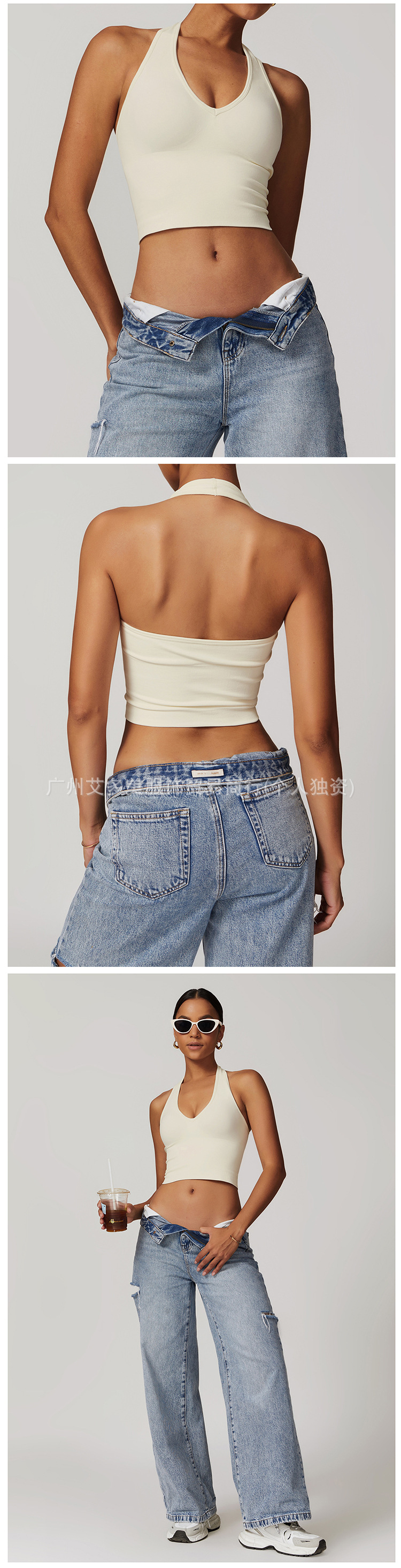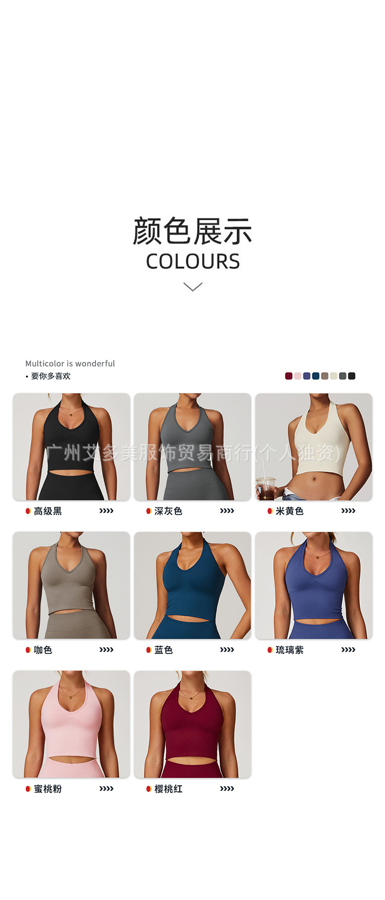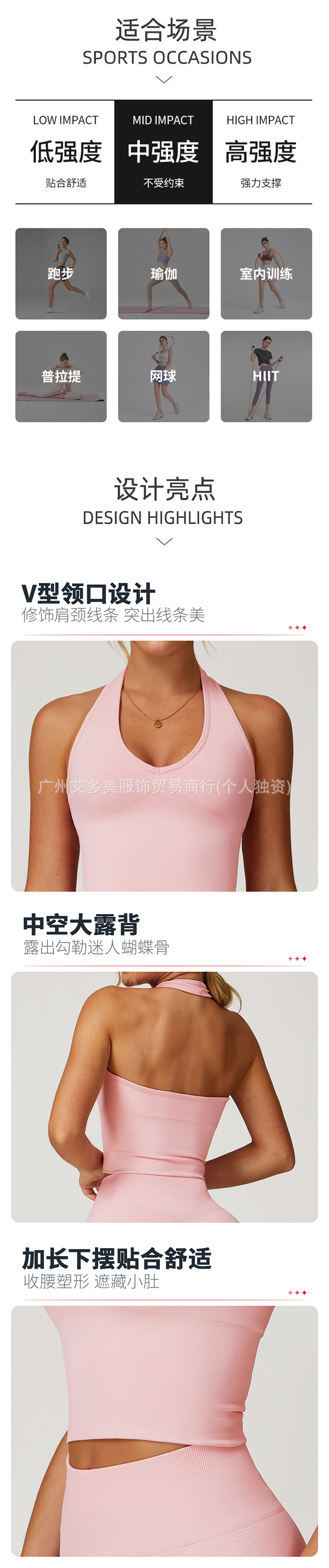 alo透气挂脖美背瑜伽文胸欧美无缝运动内衣女夏防震健身上衣