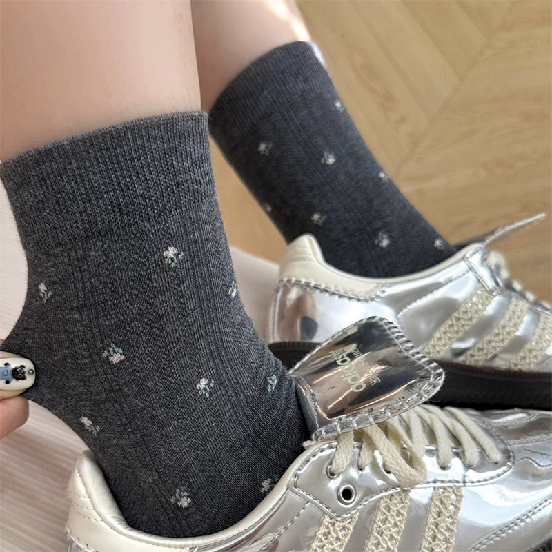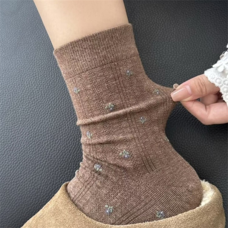 秋冬新款法式温柔小碎花袜子女中筒袜ins风百搭优雅堆堆袜长筒袜