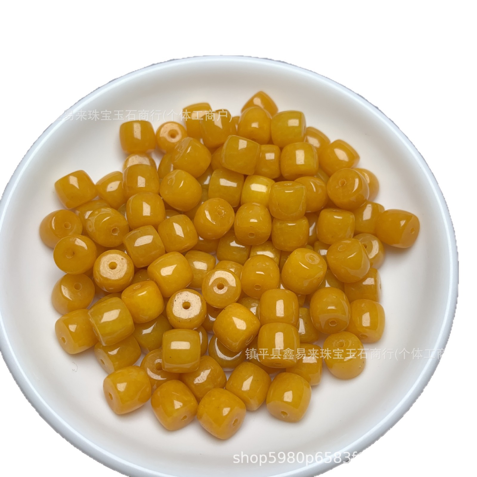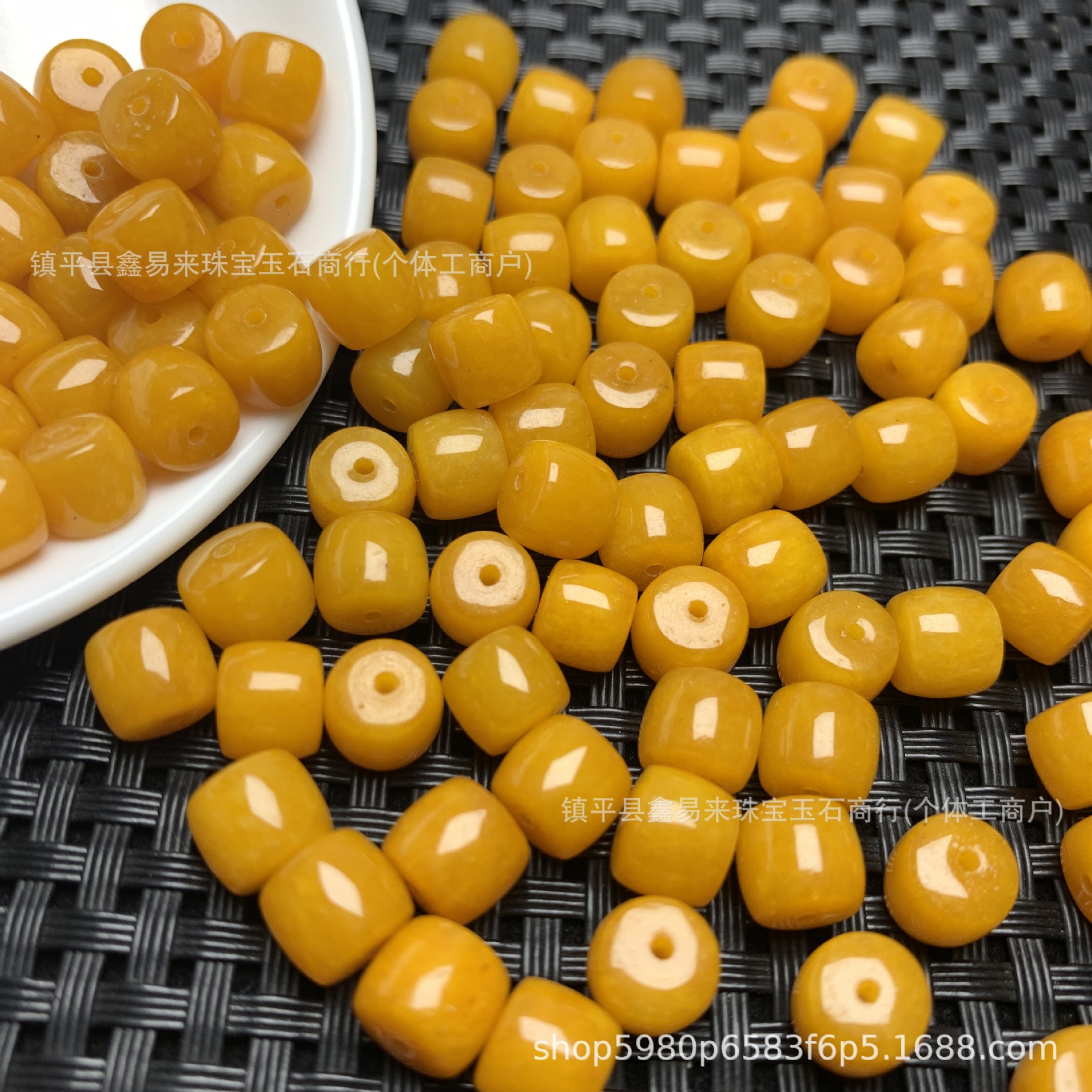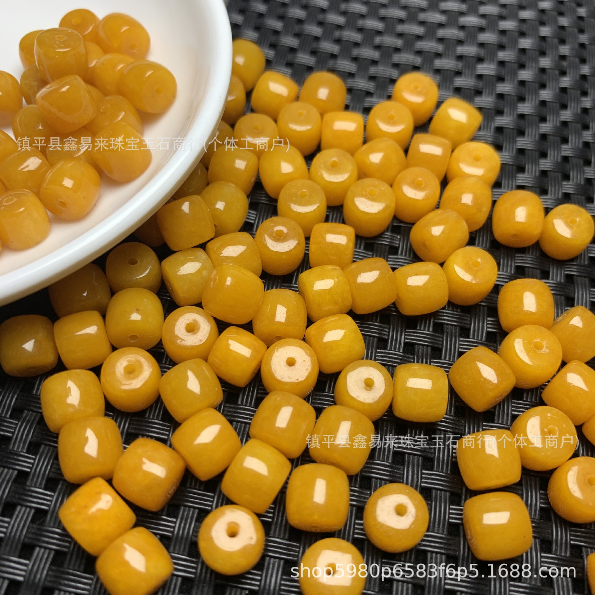 翡翠黄翡色7x8mm直切老型珠散珠鸡油黄散珠工厂直销玉石配饰批发