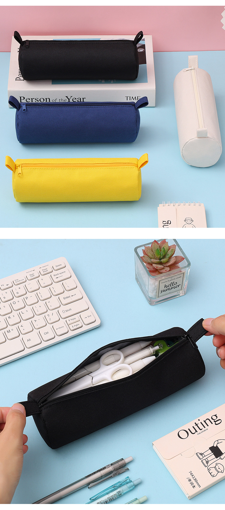 颜色 宝蓝色【圆筒笔袋】,藏青色【圆筒笔袋】,粉色【圆筒笔袋】,黑色【圆筒笔袋】,红色【圆筒笔袋】,黄色【圆筒笔袋】,灰色【圆筒笔袋】,米白色【圆筒笔袋】,紫色【圆筒笔袋】