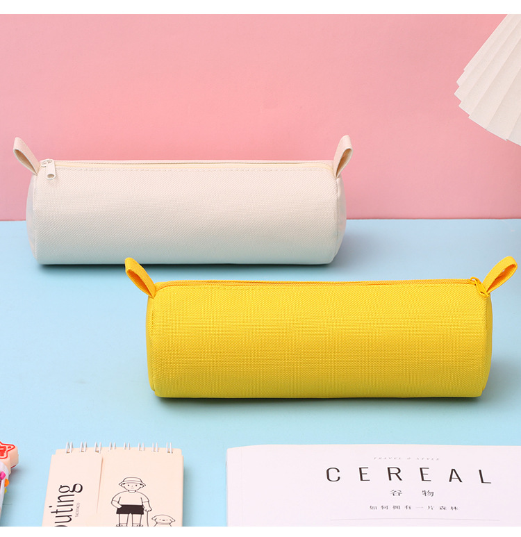 可爱纯色简约圆筒形牛角学生文具笔袋小众防水耐脏便携大容量开口