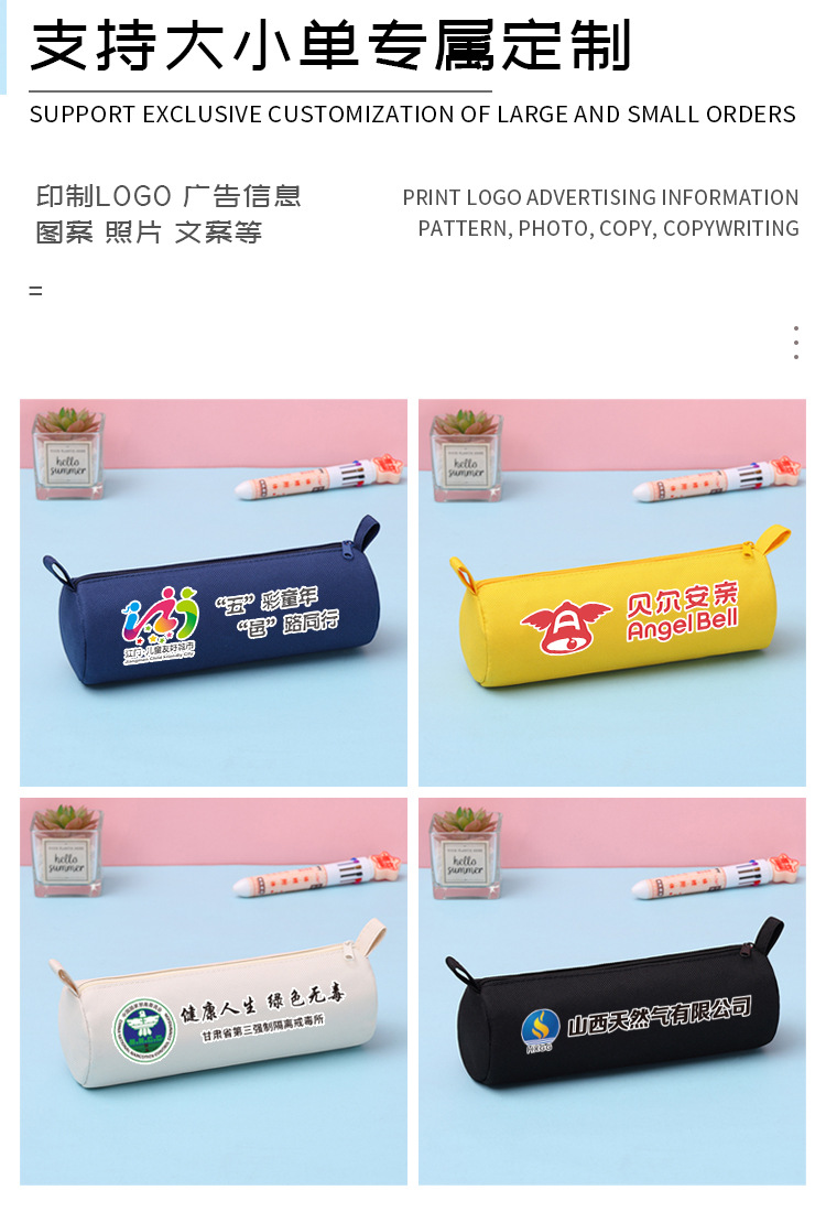 無地のペンケース、ロゴ印刷、卸売、文房具箱、携帯用、印刷、学生、広告、プチギフト、収納