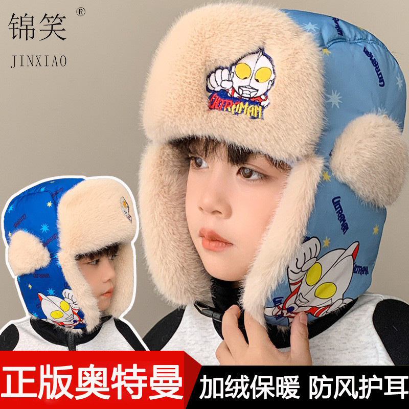 子供用帽子男女子供かっこいいウルトラマン雷鋒帽冬には防寒スキーのぬいぐるみ保温帽を厚くする