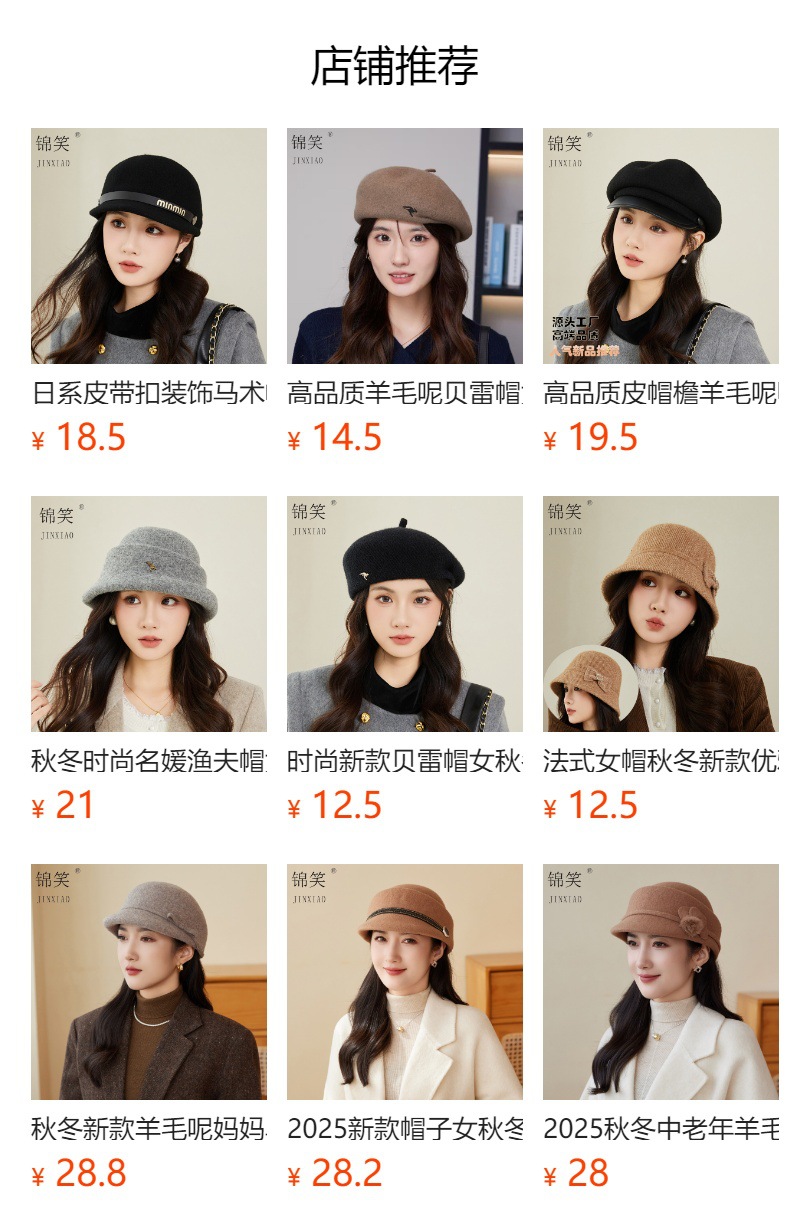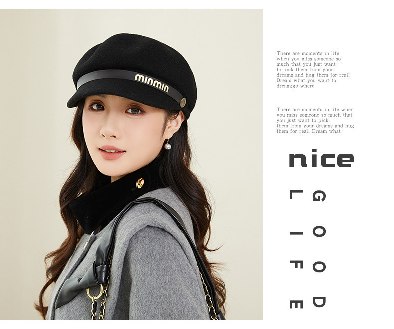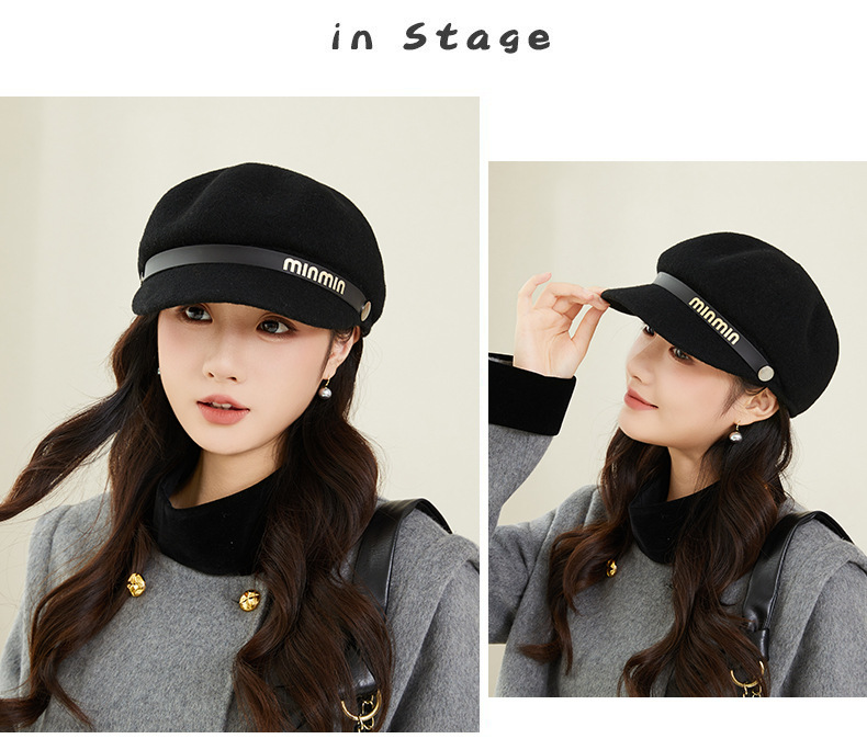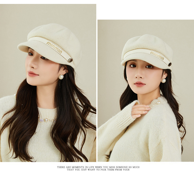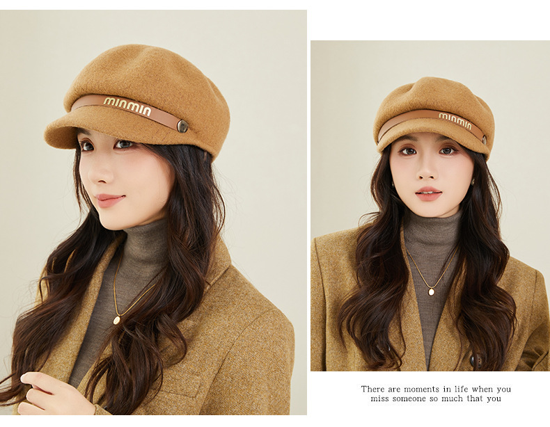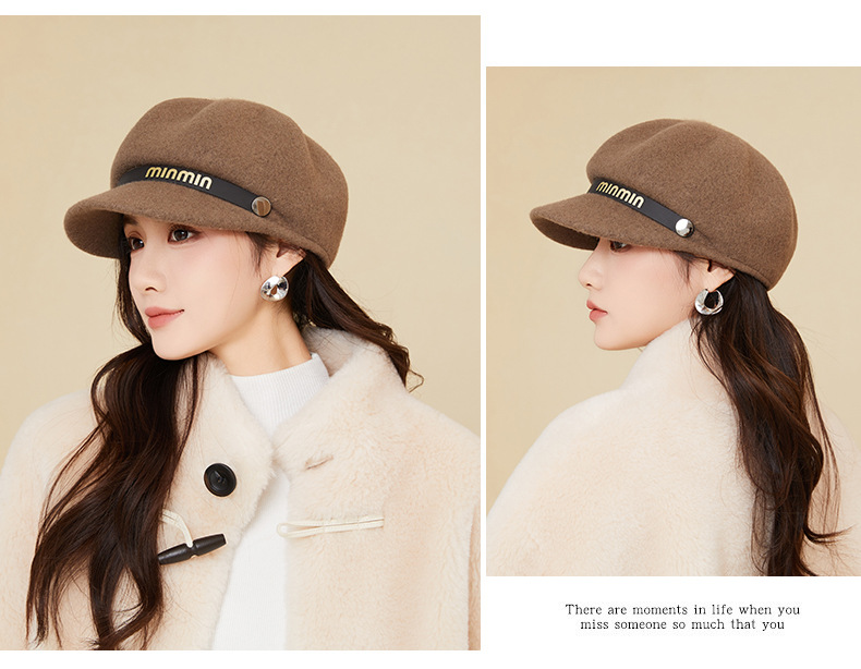 25新款鸭舌帽秋冬女羊毛保暖爆款八角帽日系复古保暖报童帽画家帽