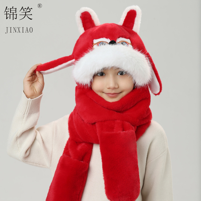 冬の新型の赤いぬいぐるみが目を覚ますライオンの帽子男の子の女の子の帽子のマフラーの手袋の3つのセットの国の潮のお祝いの帽子