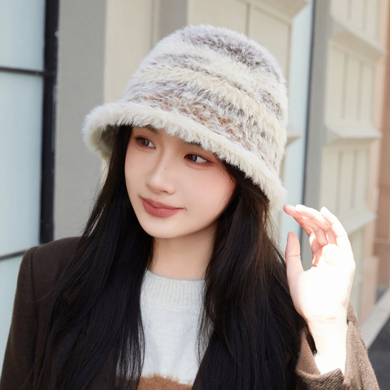 兔毛保暖帽子女25秋冬季新款显脸小针织卷边礼帽户外百搭渔夫帽潮